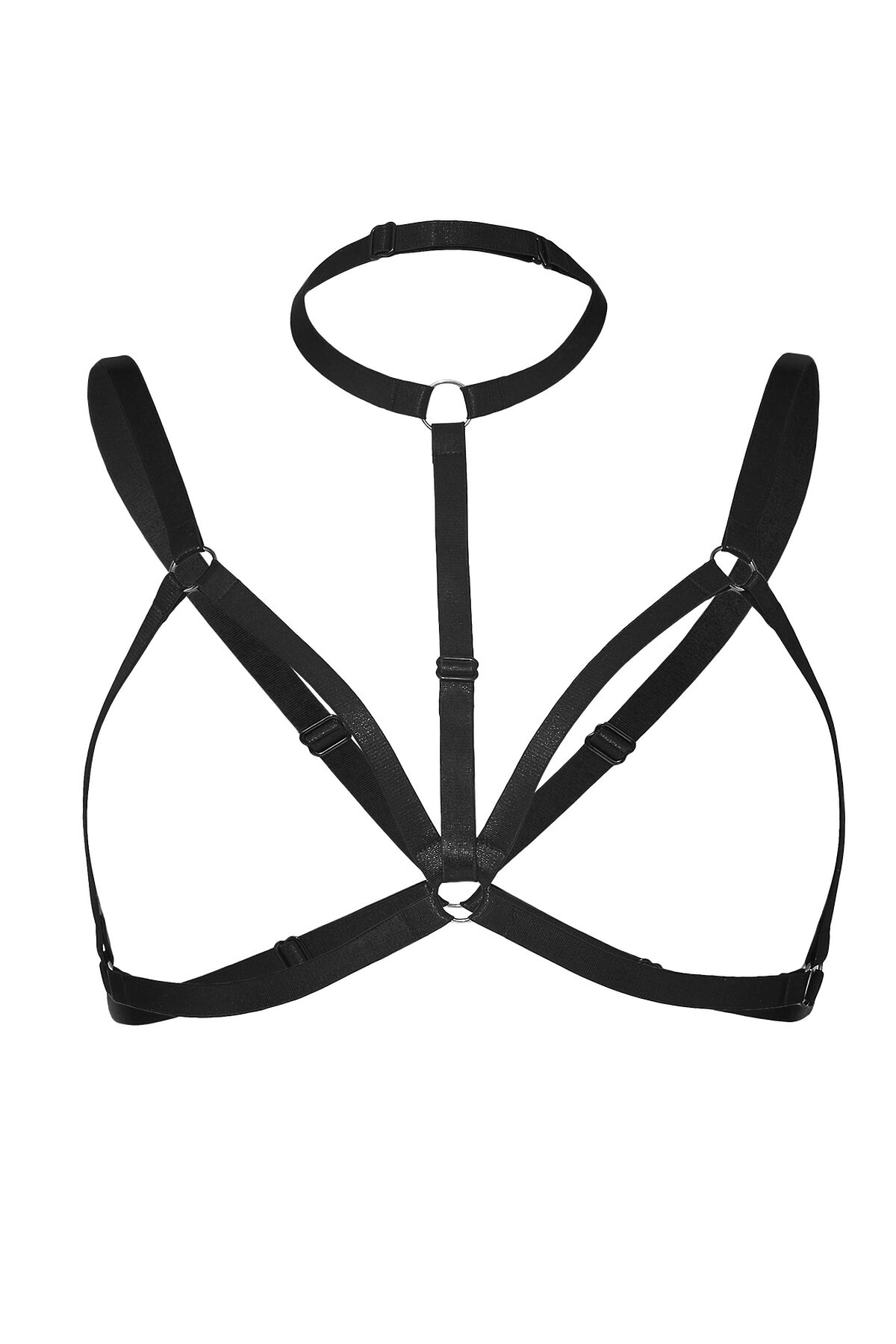 Портупея выполнена из тонких эластичных полос. Застегивается на шее. Все ремни регулируемые. Благодаря своей эластичности аксессуар подойдет женщинам разной комплекции. Параметры фотомодели 83-62-86 см, рост 169 см. На ней портупея размера UNIVERSAL. Бережная стирка при 30 градусах.