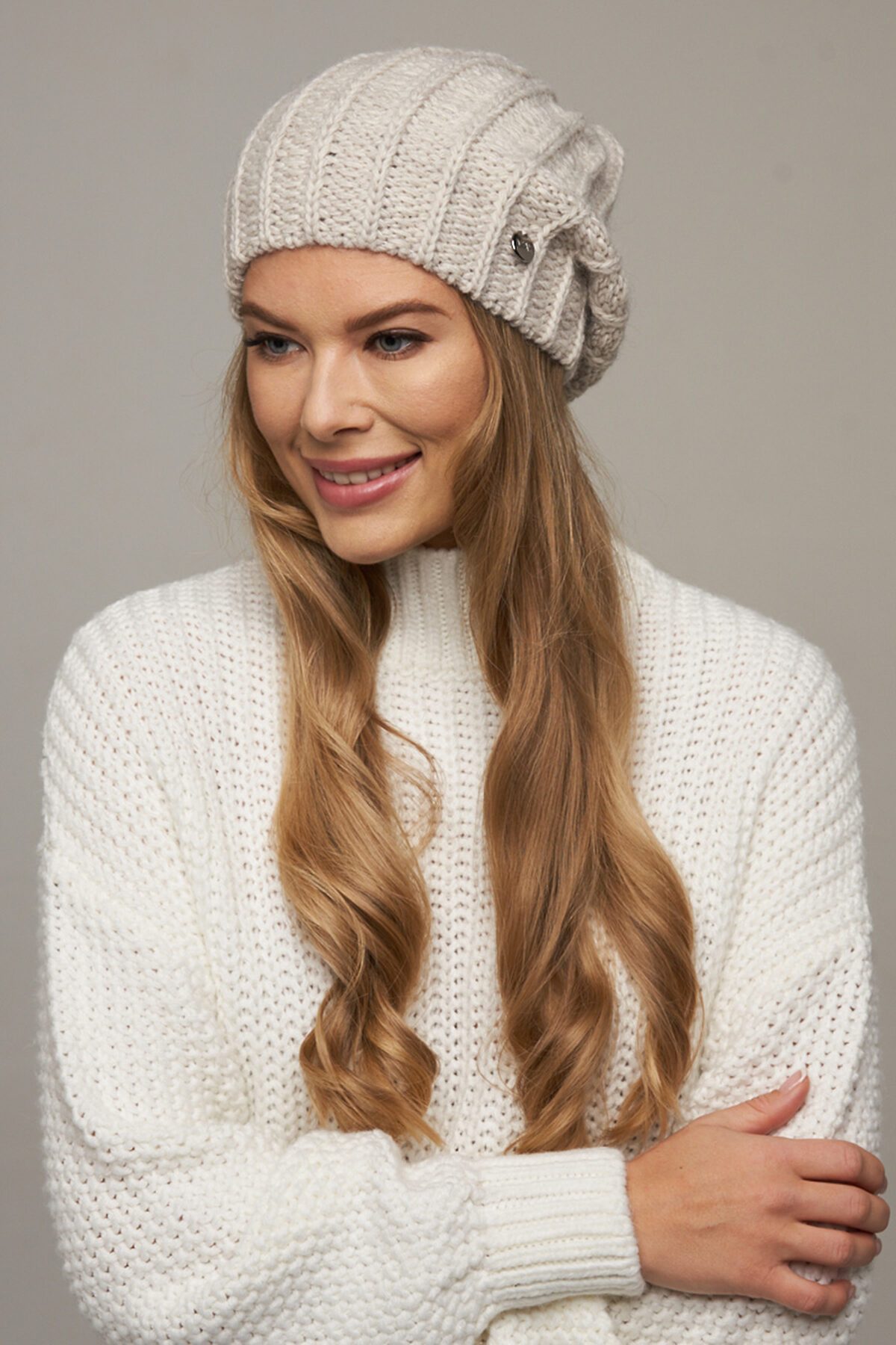 Шапка из вязанного трикотажа для женщин.