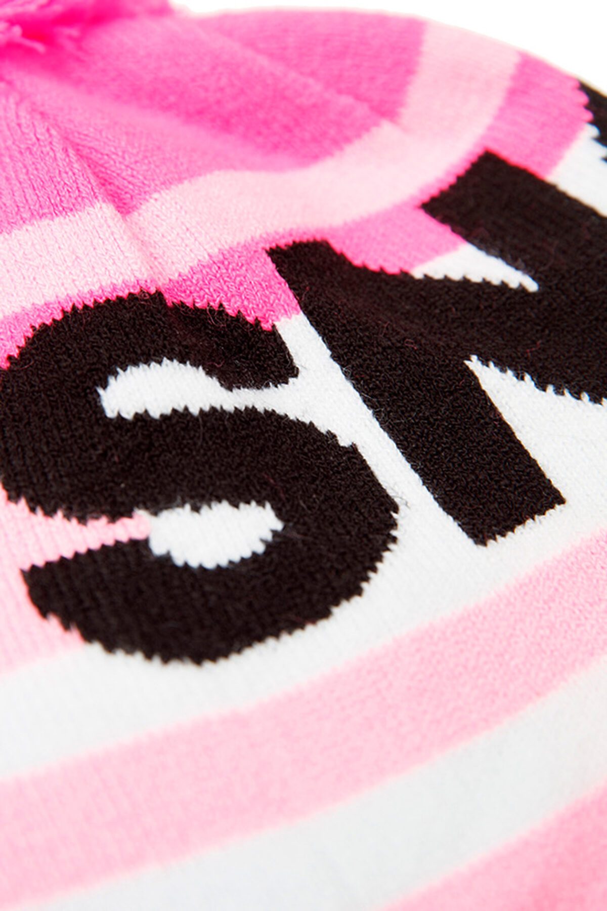 Шапка из вязаного трикотажа со шрифтовым принтом пряжа из акрила: легкая, теплая, гипоаллергенная подкладка из мягкого флиса дополнительное утепление в области ушей завязки помпон из ниток светоотражающие элементы.