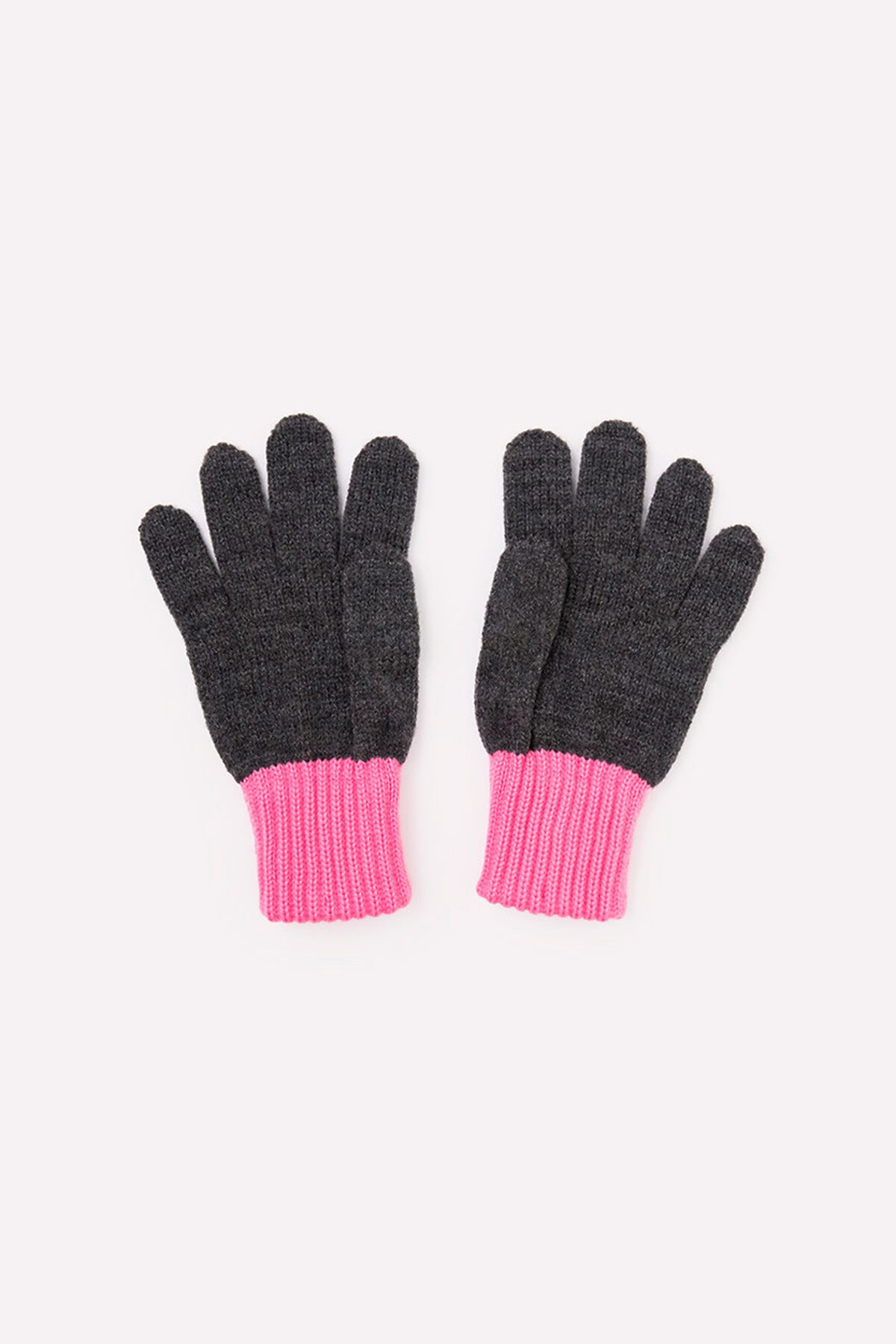 Вязаные акриловые перчатки тёмно-серого цвета с мягкими коралловыми манжетами.