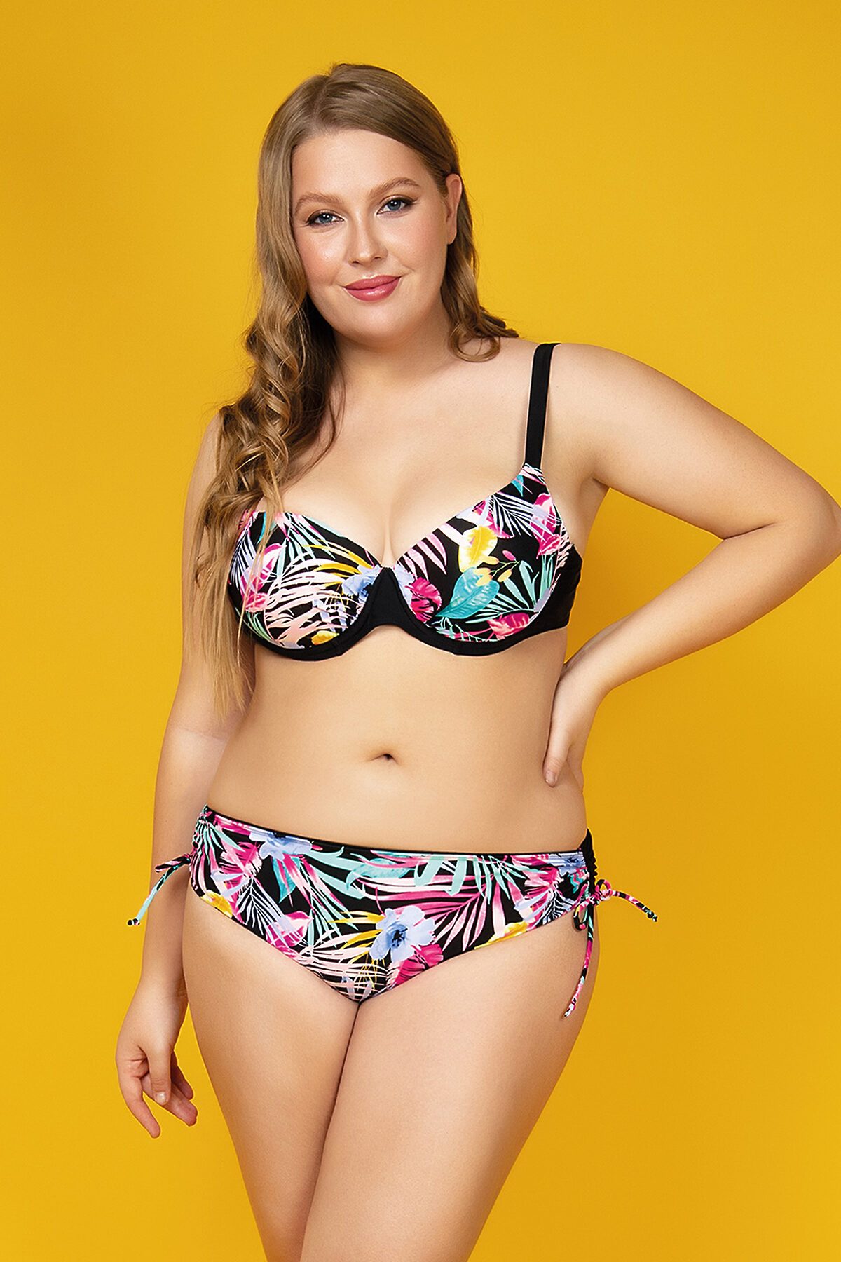Эффектное цветовое решение! Роскошный купальник для женщин с пышными формами. Бюст - плотные формованные чашки на каркасной поддержке с широкими регулируемыми бретелями и застежкой на спине. Плавки классической посадки с комфортной шириной бочка и завязками, которые позволяют регулировать высоту по своему желанию и комфорту.