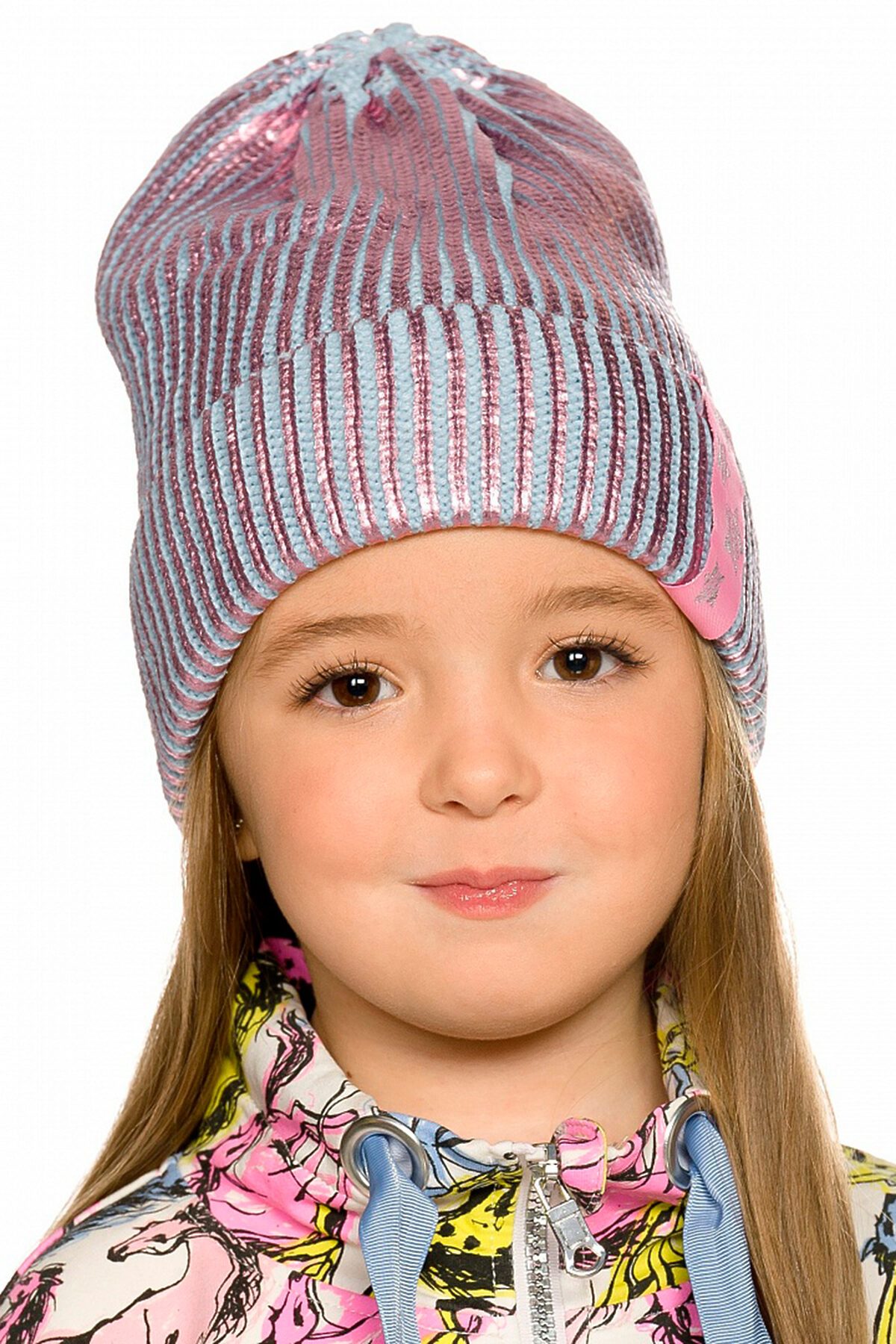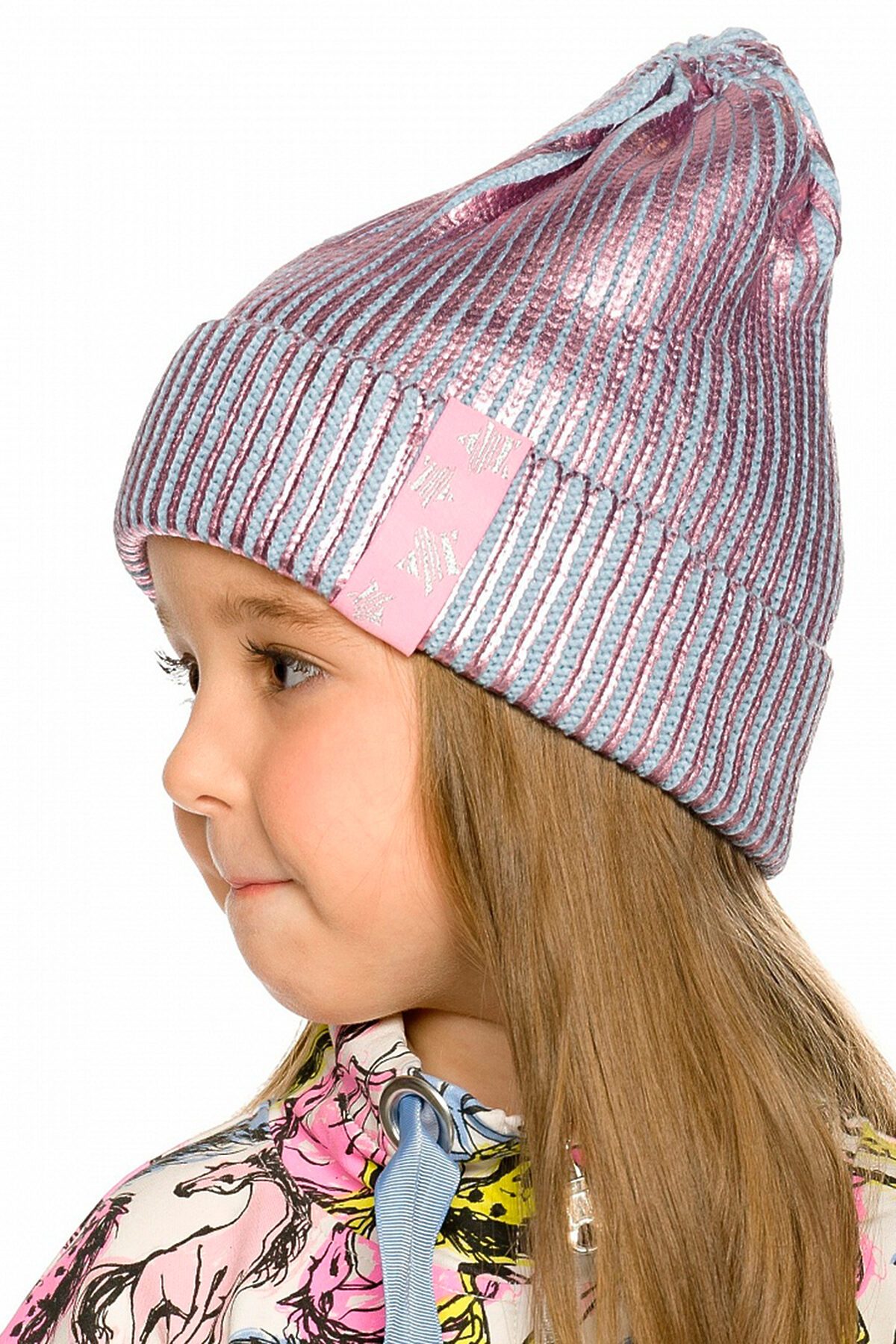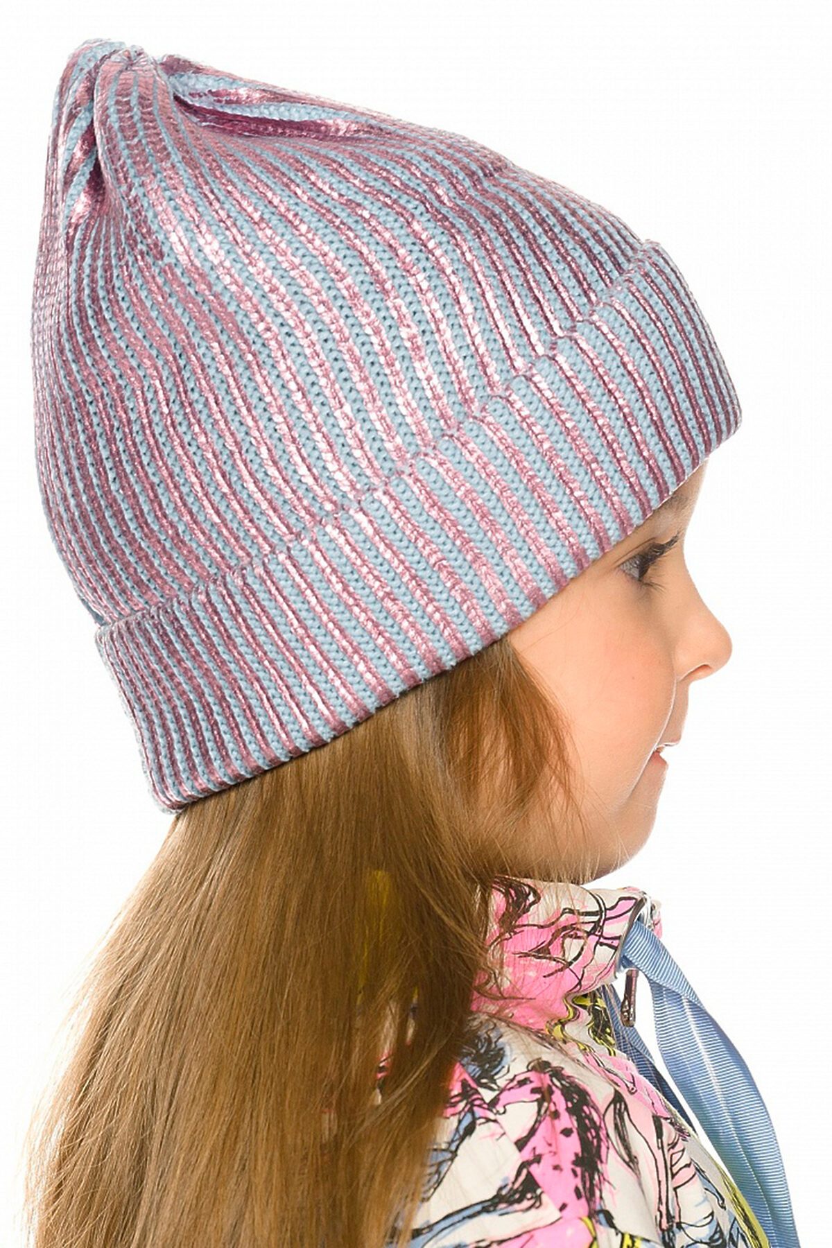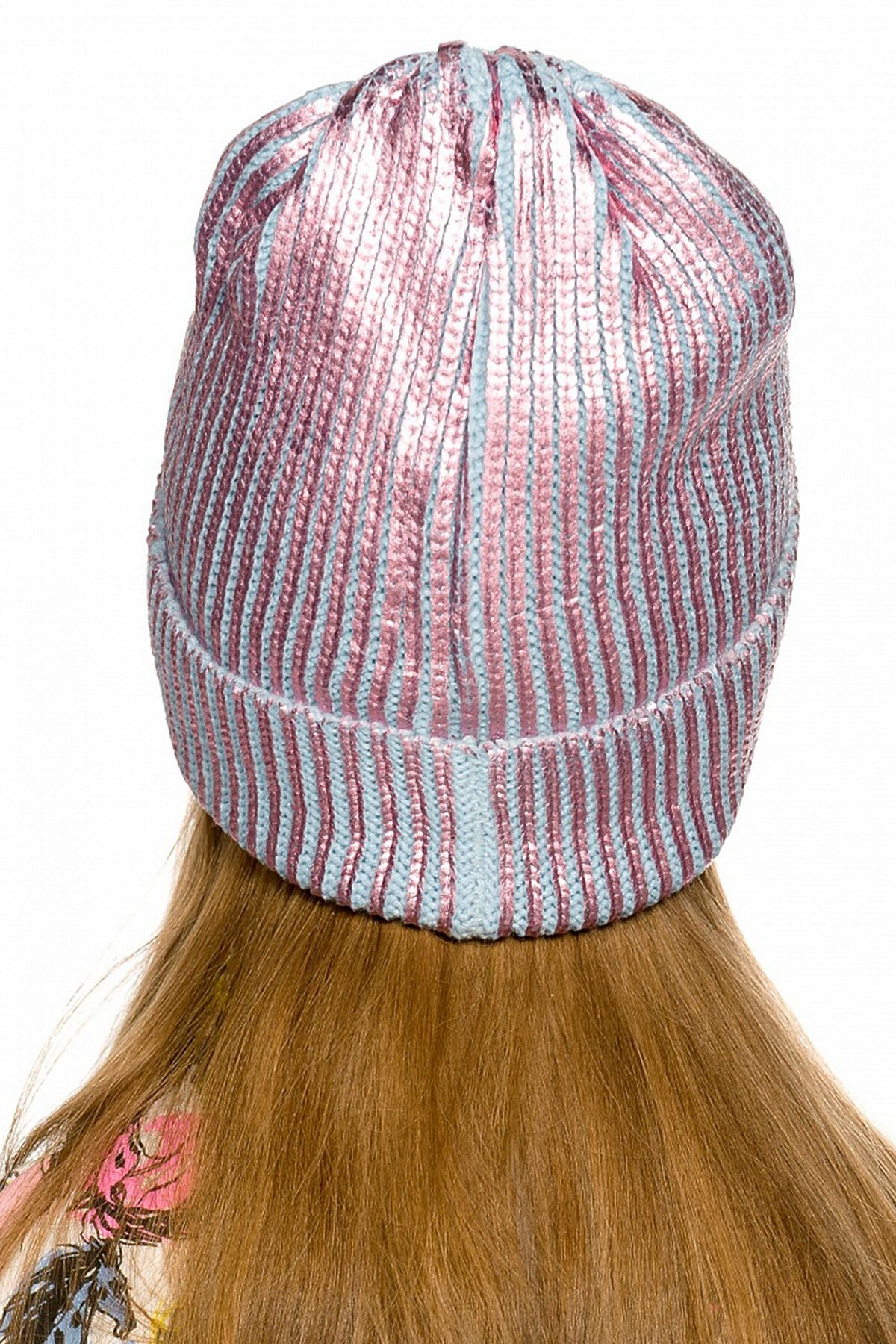 Однослойная шапка из акрила с металлизированным напылением. На отвороте декоративная репсовая лента с принтом из глиттера.