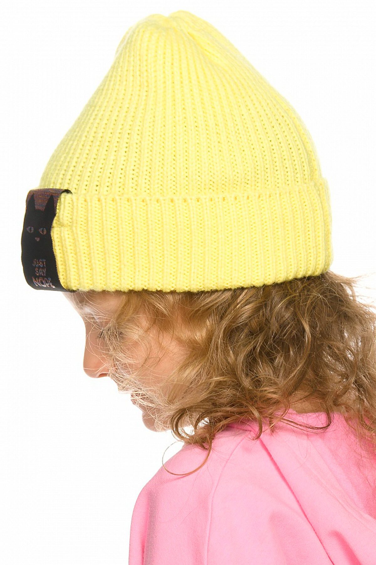Одинарная шапка новой модели. Декор из репсовой ленты с вытканными голографическими нитками котиком и надписью. Перевод Просто скажи неа.