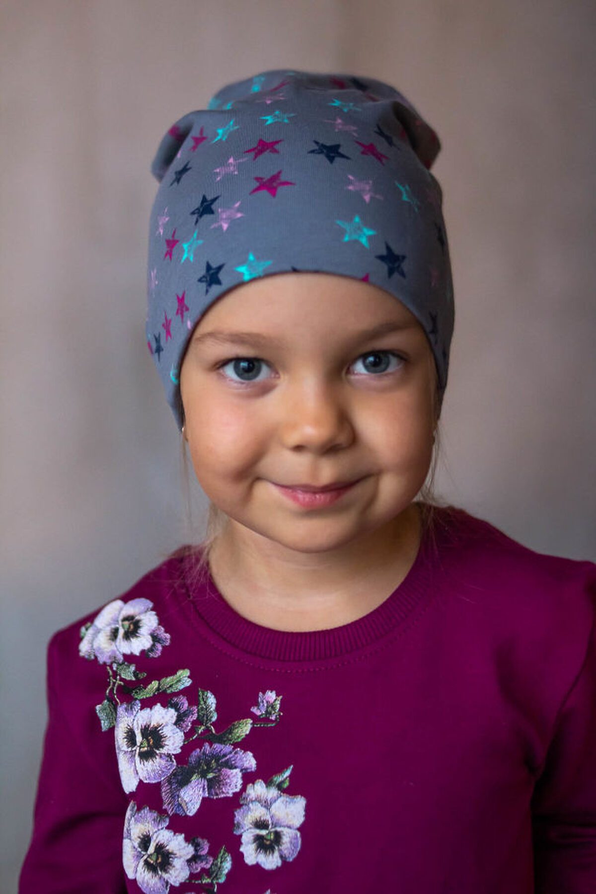 Шапка для девочки с принтом в виде звезд.