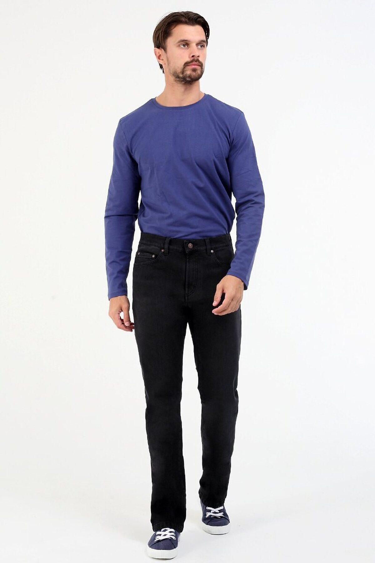 Мужские классические утепленные джинсы с пятью карманами. Посадка Regular fit (полуоблегающие по бедру), немного дополнительно заужены к низу по сравнению с моделью 0965, высокая талия. Застежка на молнии. Выполнены из утепленной слабоэластичной ткани Black denim comfort stretch, к изнаночной ткани прикреплена дополнительная трикотажная ткань (флис) с мягким, шелковистым и приятным на ощупь ворсом. Темная стирка со слабо выраженными потёртостями спереди и сзади. Параметры указаны для размера 32.