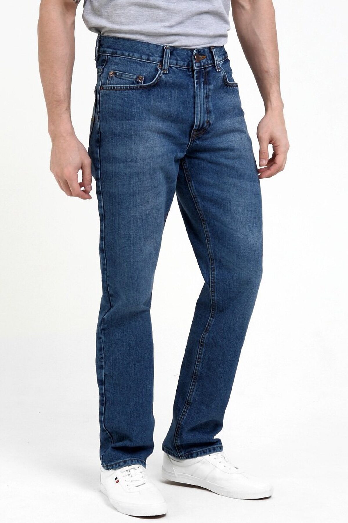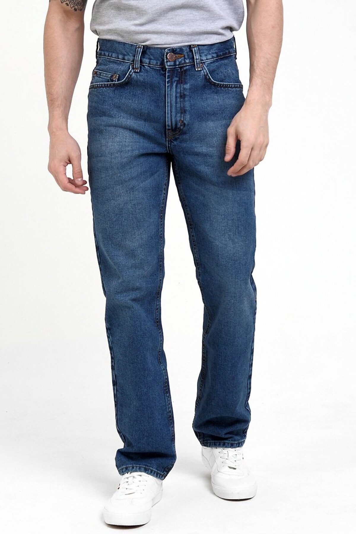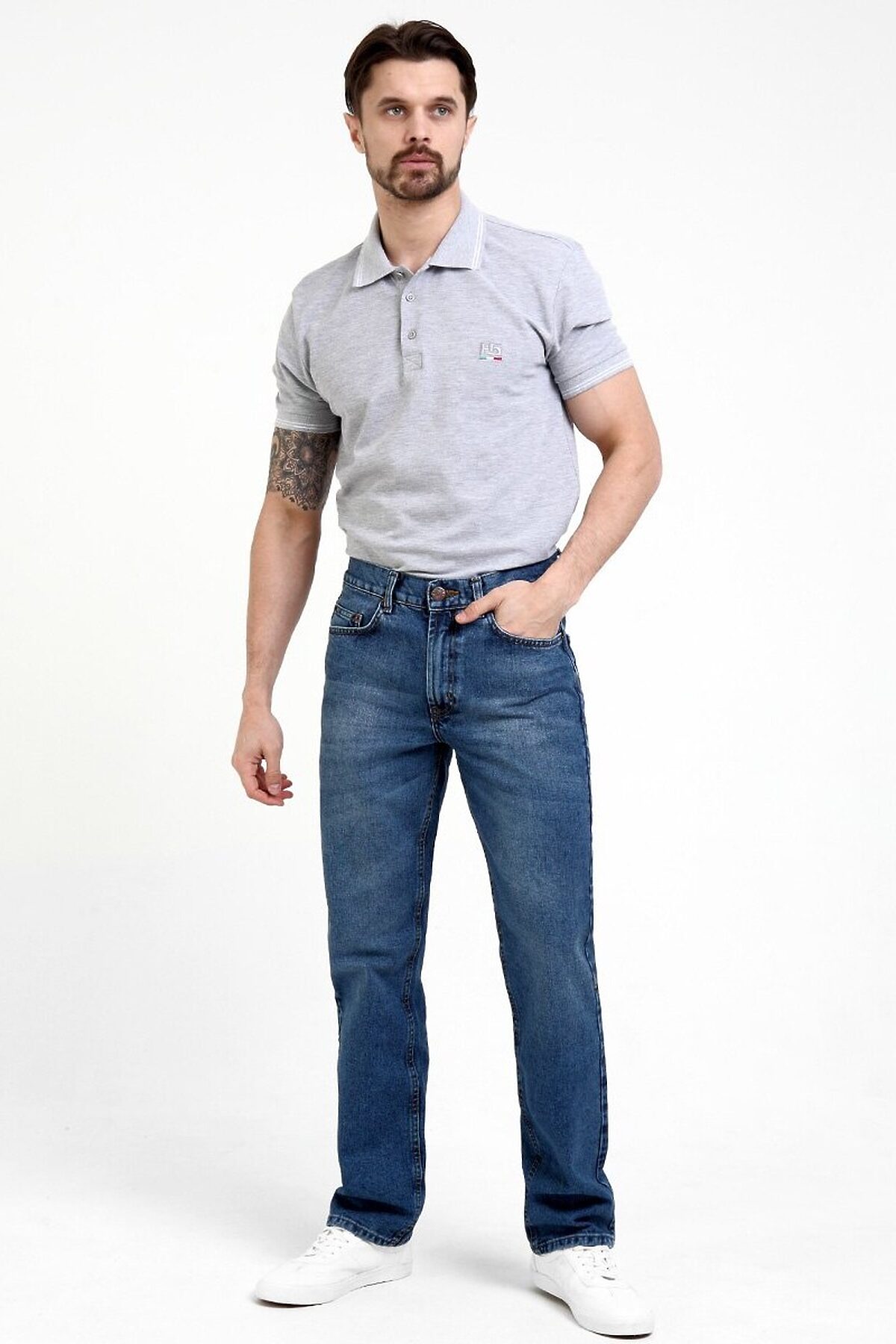 Мужские классические джинсы с пятью карманами. Посадка Regular fit (полуоблегающие по бедру), высокая талия. Застежка на молнии. Немного дополнительно заужены в колене и по низу в сравнении с моделью 0965. Выполнены из ткани denim. Средняя стирка с потёртостями и "усами" спереди и потёртостями сзади. Параметры указаны для размера 32.