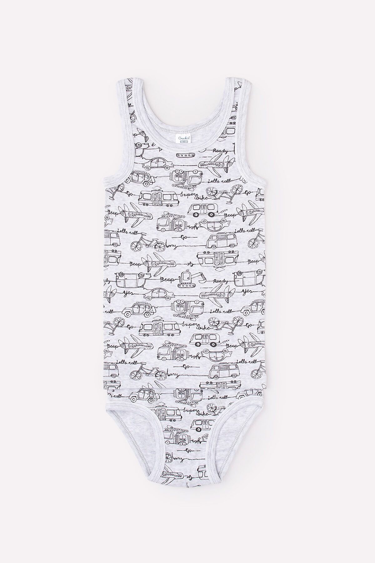 Комплект для мальчика - майка и трусы из натурального хлопка. Сшит из эластичного материала рибана пенье с набивным рисунком. Горловина и проймы обработаны бейкой.