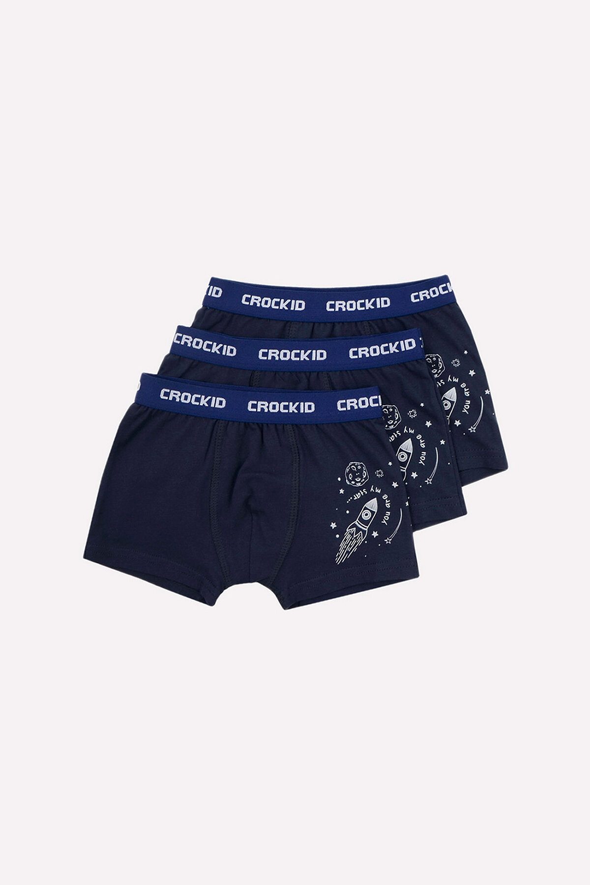 Трусы-боксеры для мальчика из супрема с эластаном, в упаковке 3 штуки. Пояс из декоративной эластичной тесьмы с надписью, средняя часть двойная с вытачкой. Цена указана за 3 шт.