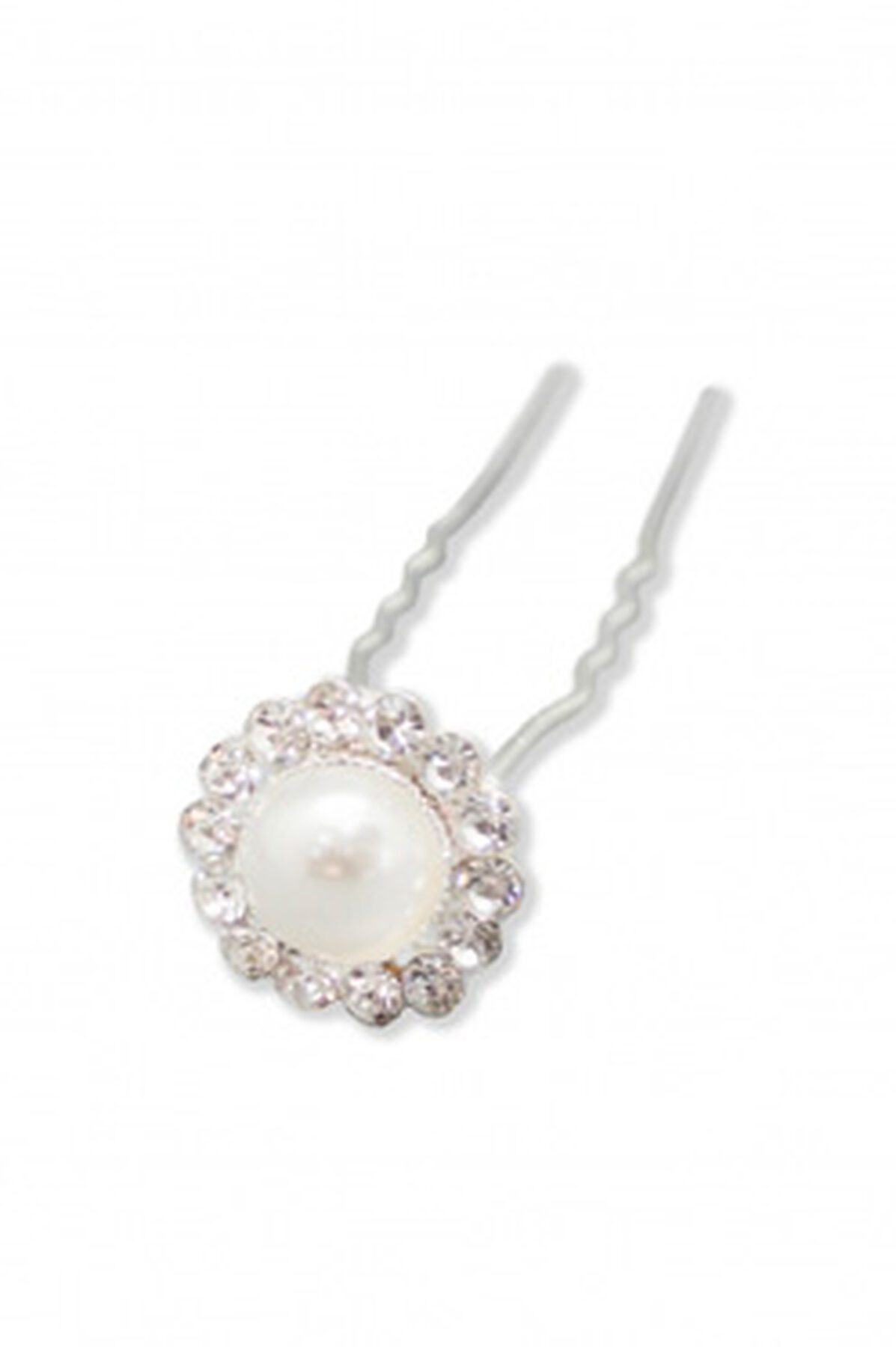 Шпилька цветок с жемчугом и белыми стразами по краям. В упаковке 20 шт.