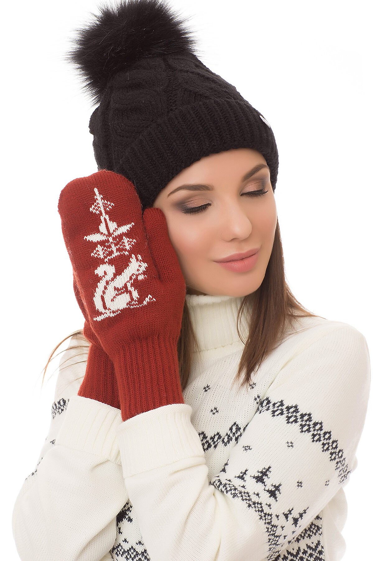 Теплые и уютные варежки с пестрым узором от бренда VAY выполненные из шерсти и пана. Стильное дополнение к зимнему образу.