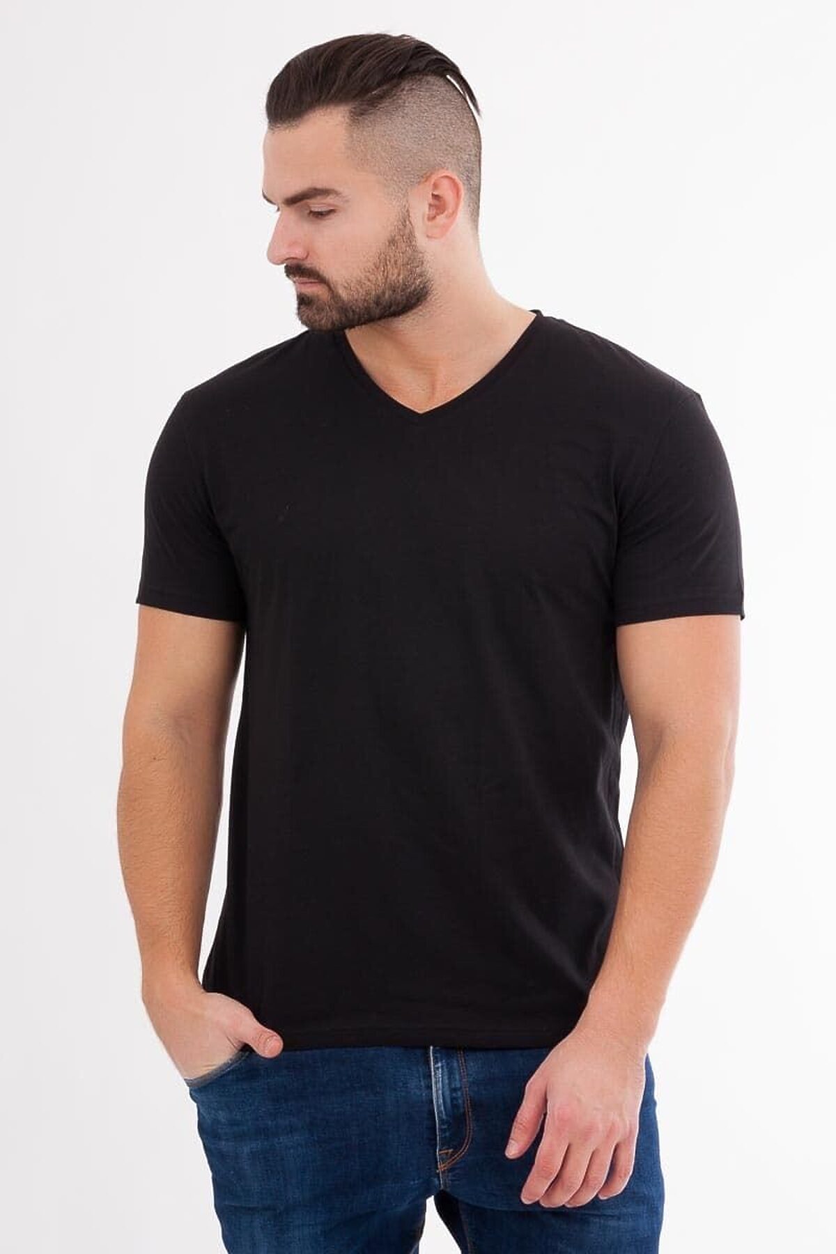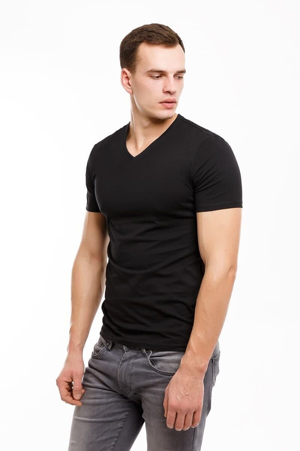 Лаконичная мужская футболка из трикотажного полотна. Классическая длина, V-образная горловина, короткие рукава – столько и универсально!