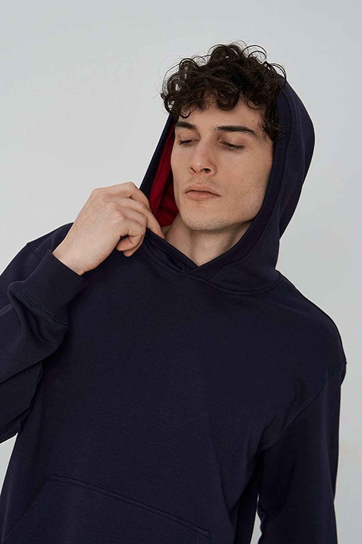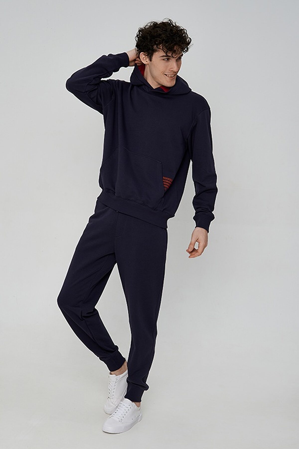 Худи с капюшоном на подкладе из контрастной ткани. Карман кенгуру, втачной рукав. Декор вышивка на спинке, принт на полочке. Пояс, манжеты, обтачка капюшона из кашкорсе.