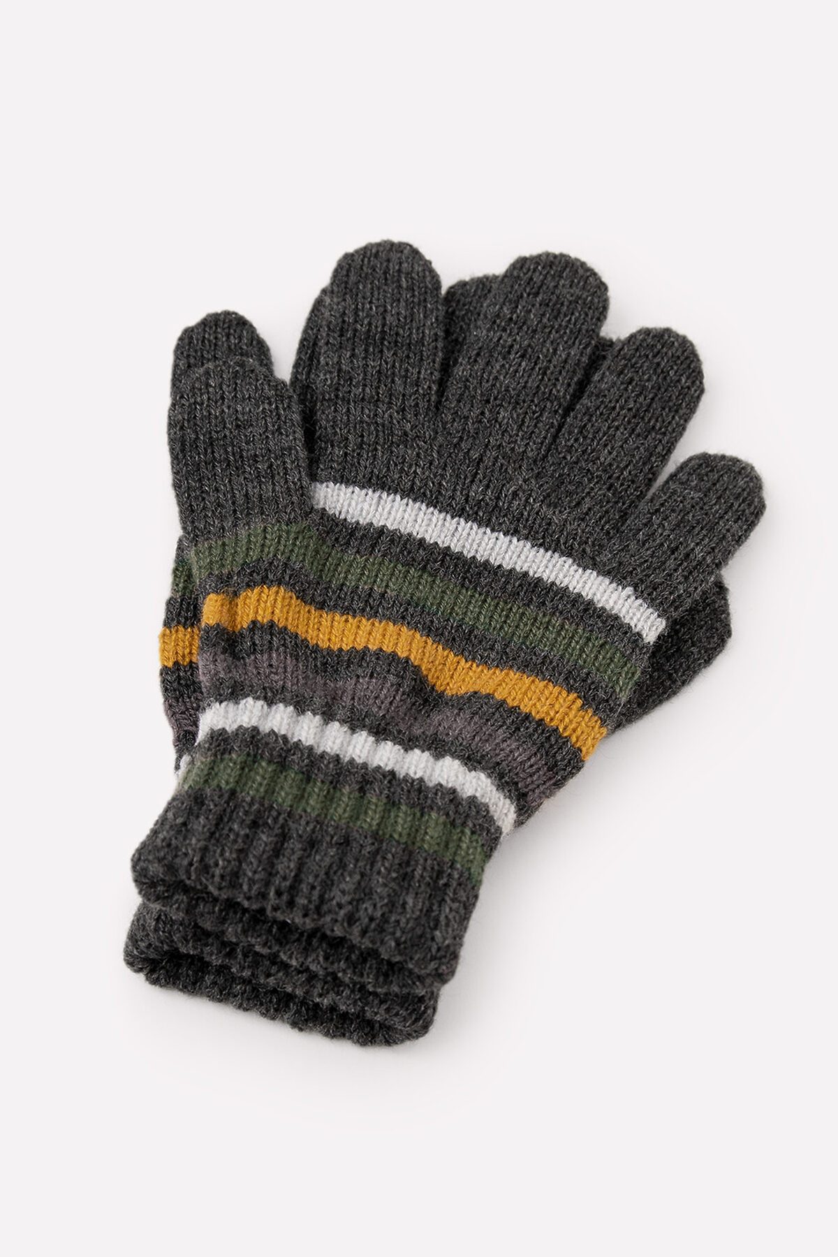Перчатки с узором в полоску из полушерстяной пряжи. Эластичные манжеты.