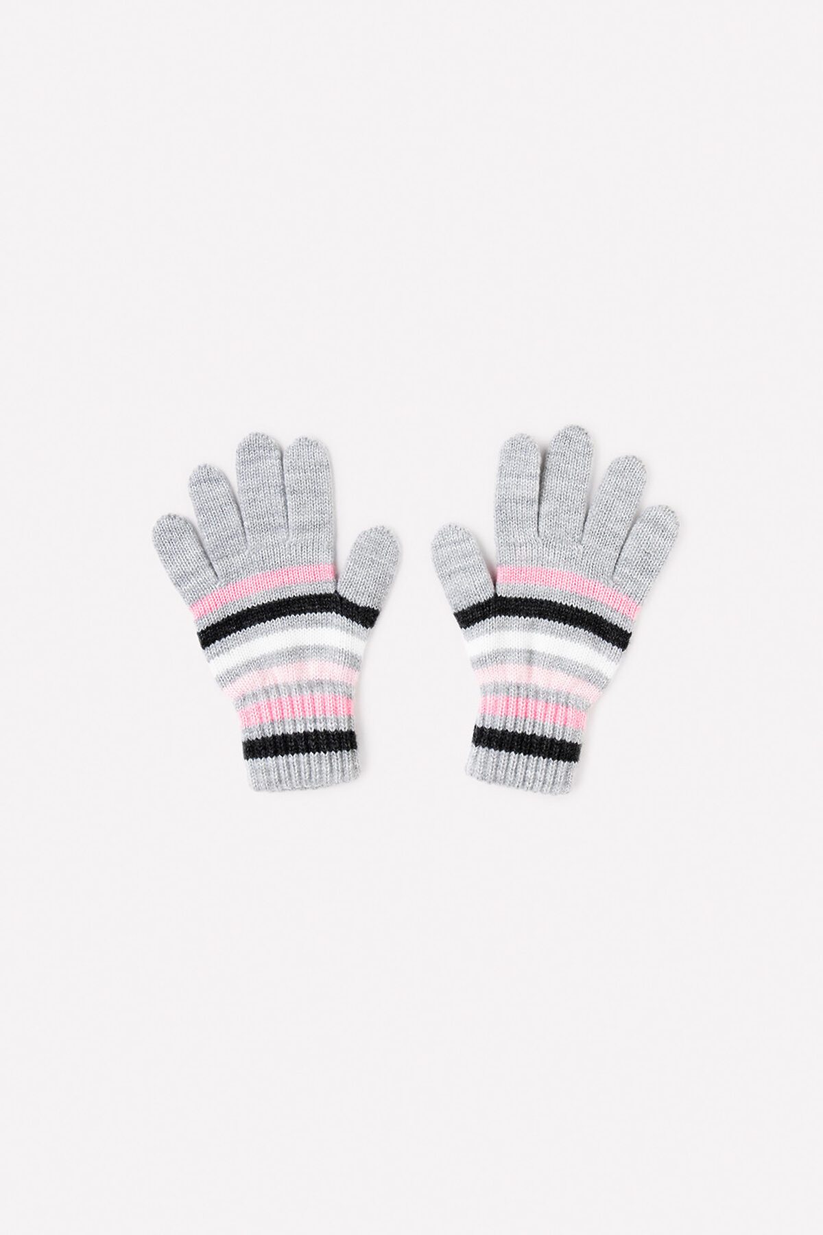 Перчатки с узором в полоску из полушерстяной пряжи. Эластичные манжеты.