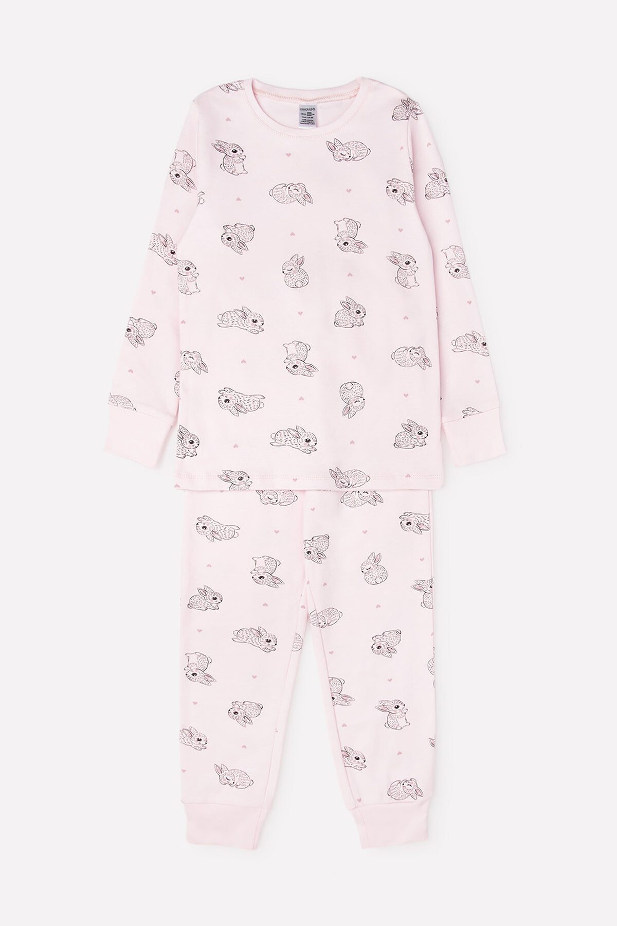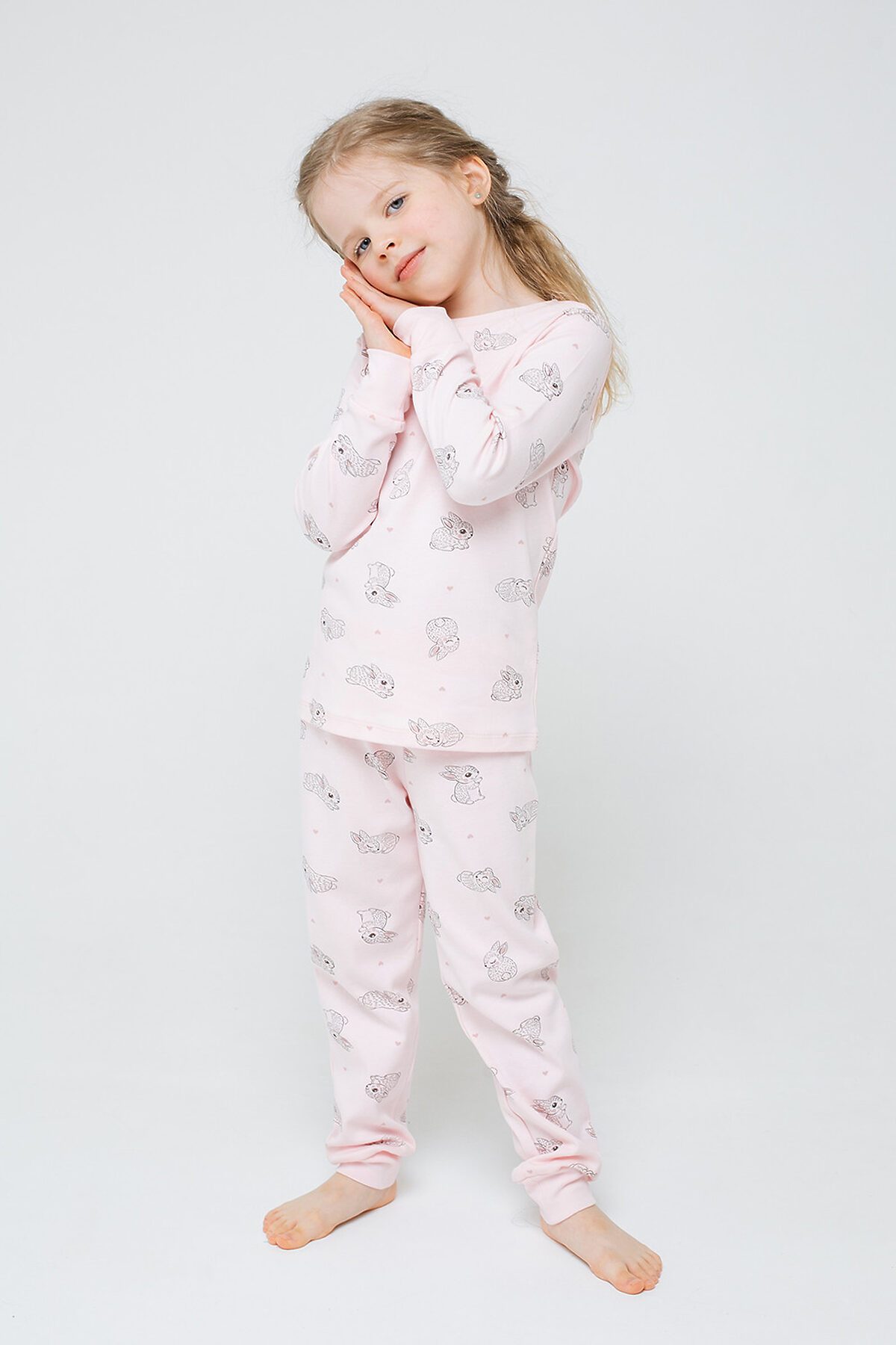 Пижама CROCKID, зайчики и сердечки на светло-розовом