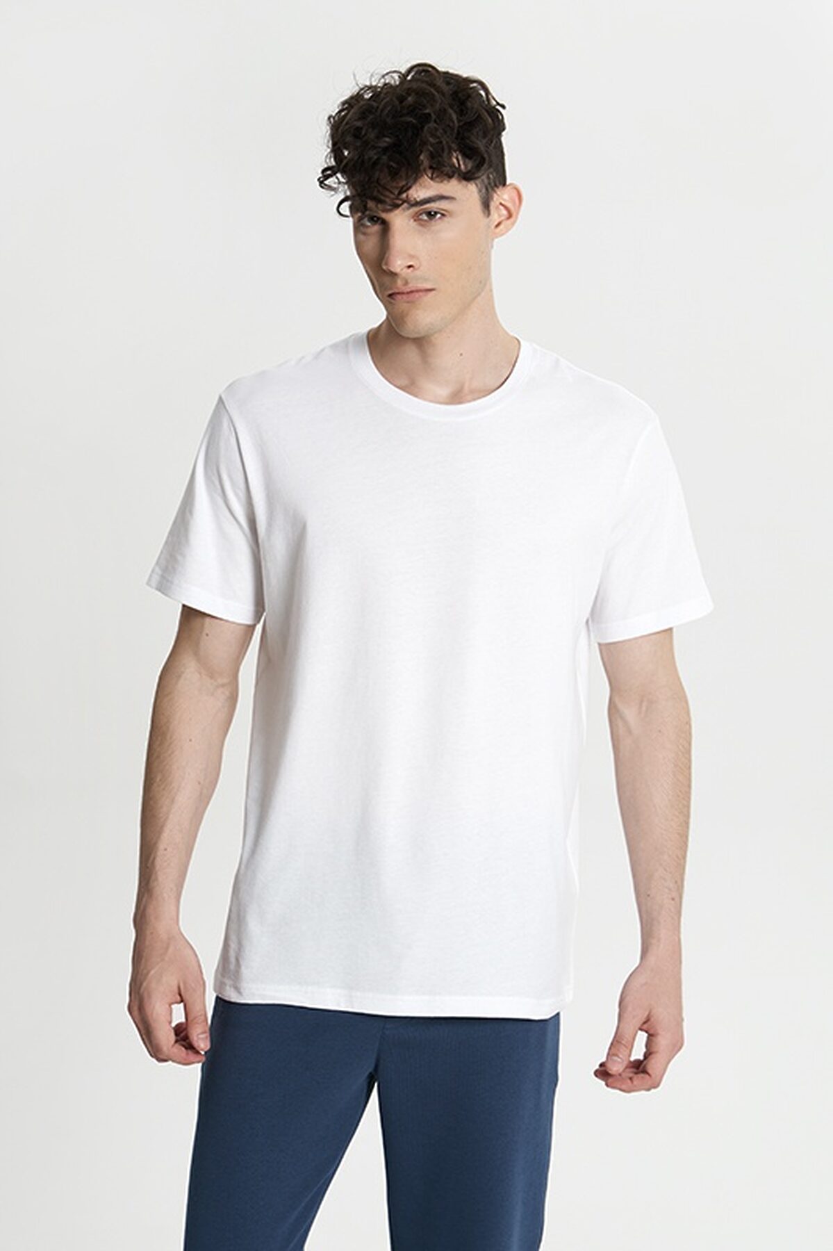 Футболка прямого фасона. Укрепление по горловине спинки. Горловина из рибаны, по переду горловины отстрочка.