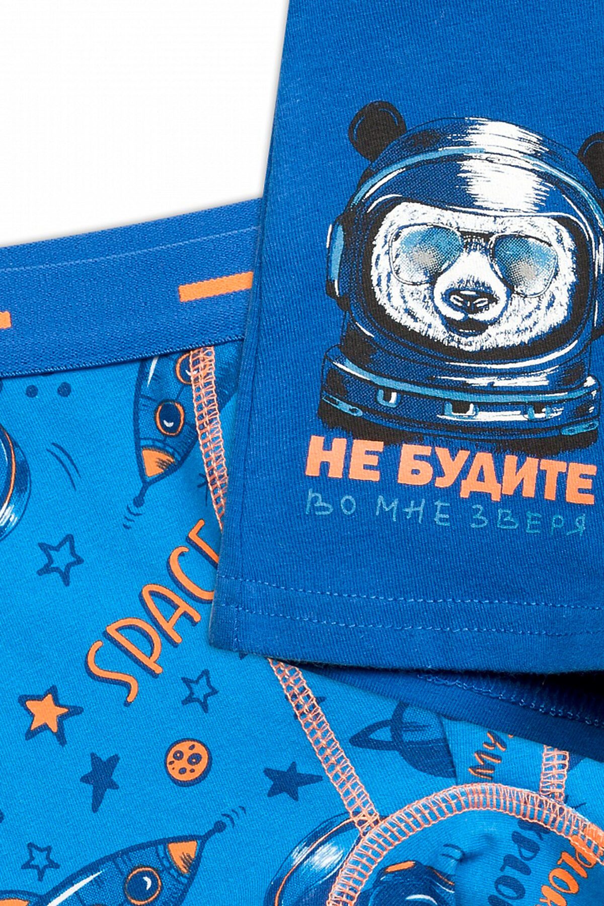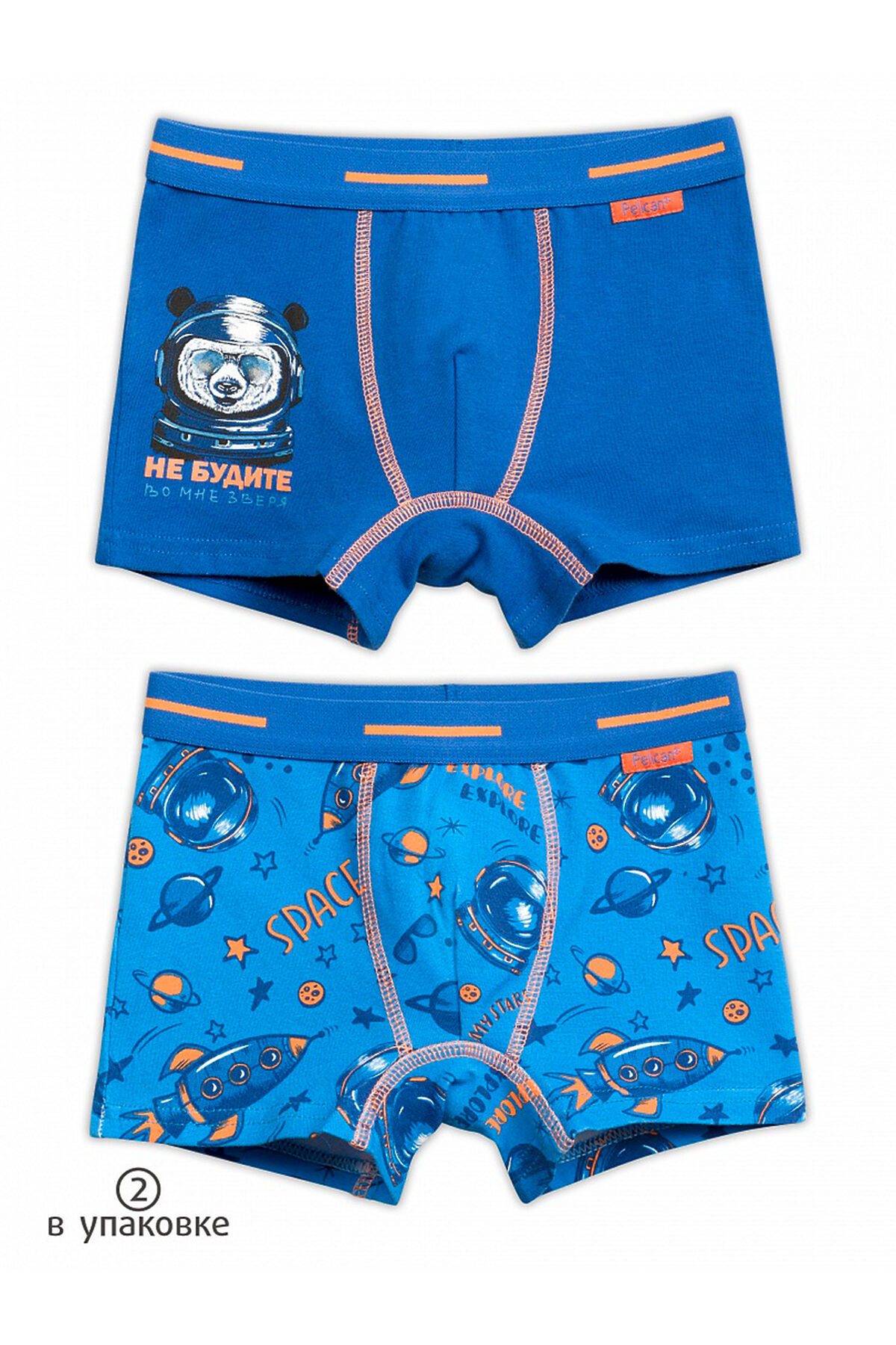 Трусы шорты для мальчиков. В комплекте 2 изделия. По талии широкий тканый эластик с вытканными полосками. Декоративная отстрочка в области гульфика.