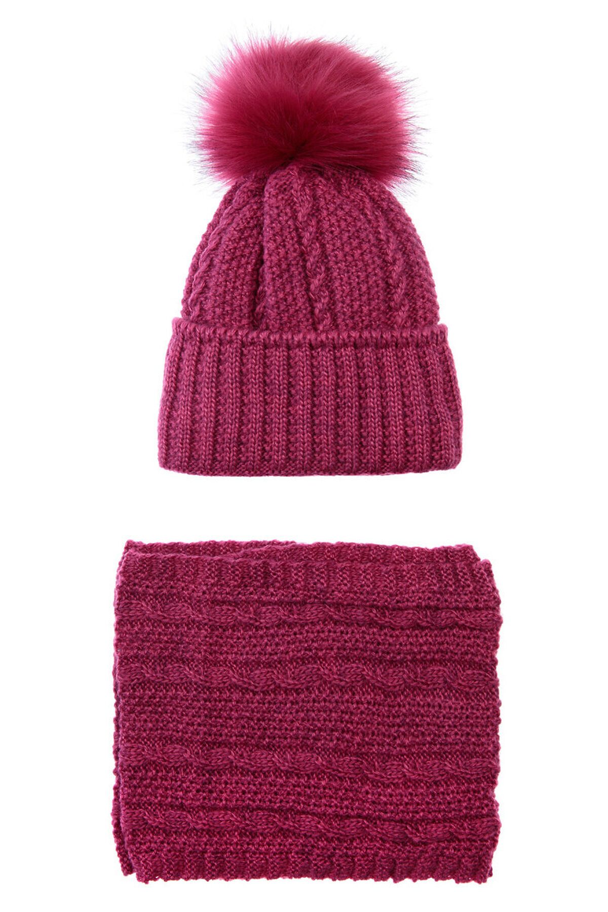 Комплект из вязаного трикотажа: шапка, снуд • пряжа из акрила: легкая, теплая, гипоаллергенная • утеплен синтепоном • подкладка трикотажная • помпон из искусственного меха, предусмотрена возможность снятия