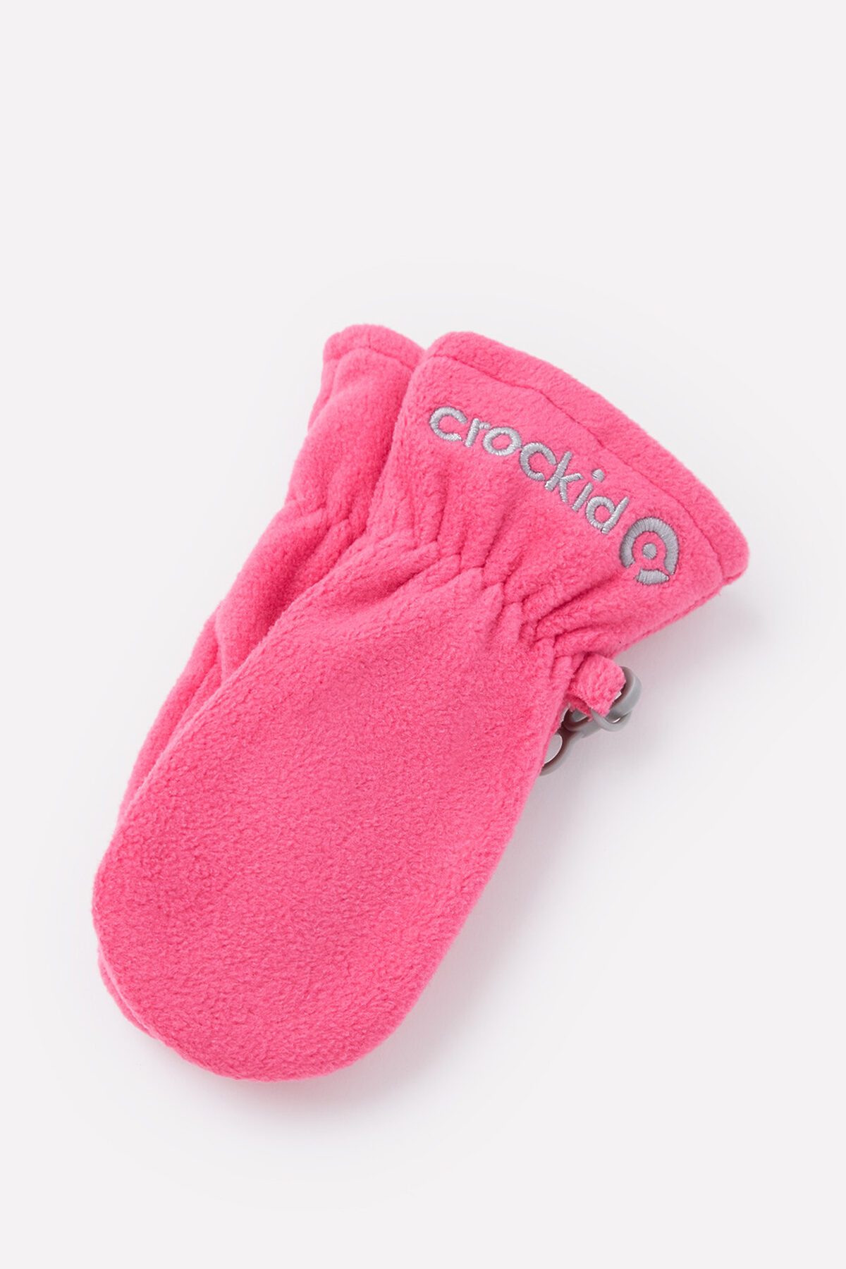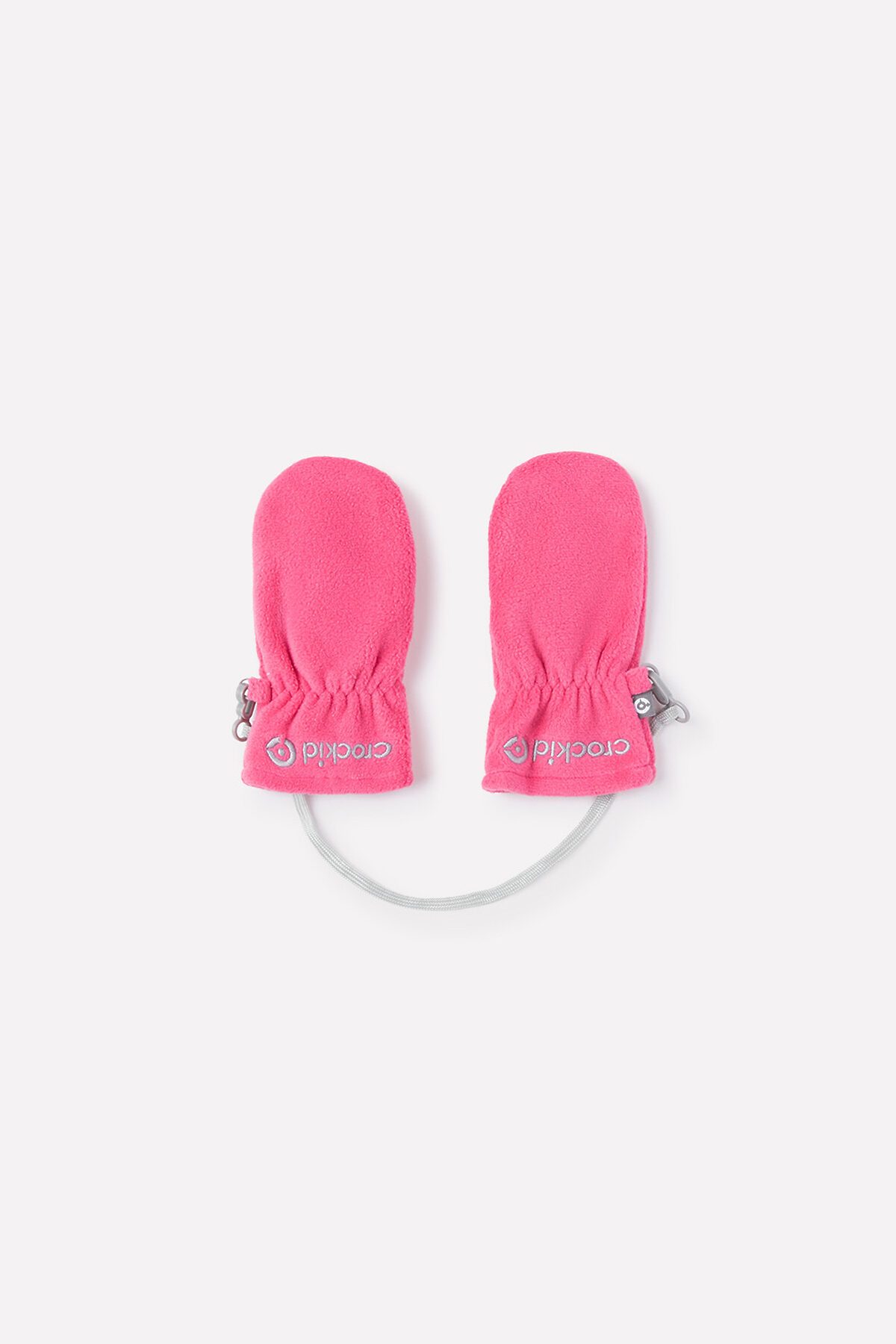 Рукавицы из однотонного флиса с длинными манжетами. Соединяются при помощи шнурка и пластиковых карабинов. В области запястья эластичная тесьма. Украшены вышитым логотипом и надписью CROCKID.