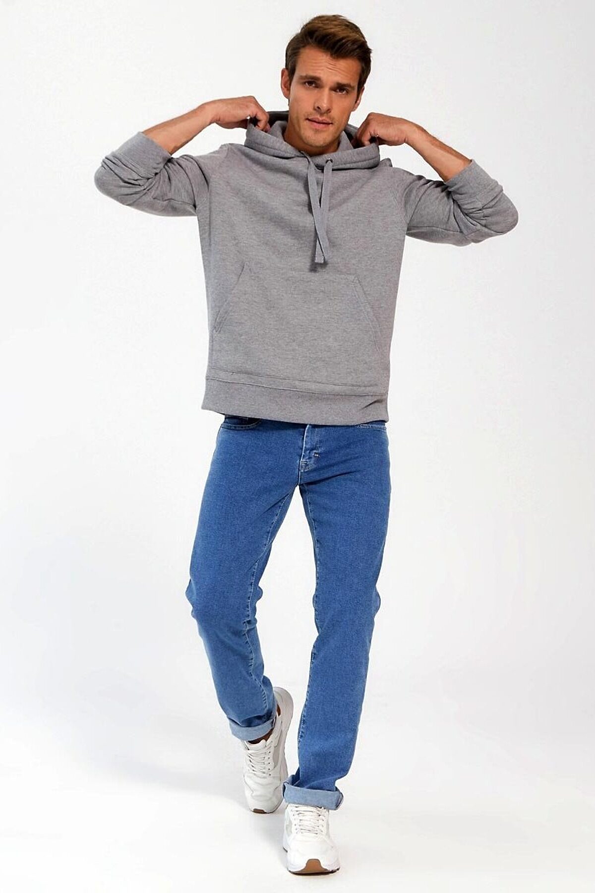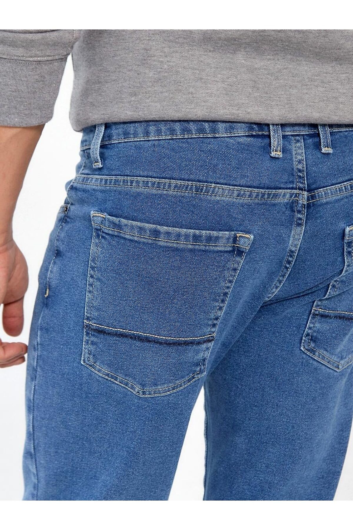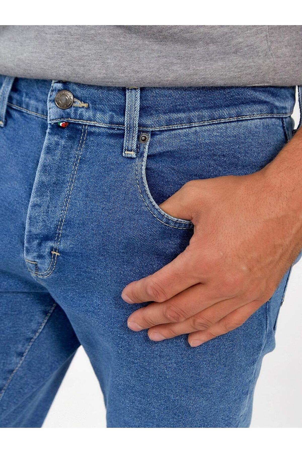 Мужские стильные джинсы с пятью карманами. Увеличенные задние карманы. Посадка Slim fit (облегающие по бедру), зауженные к низу, низкая талия спереди и средняя сзади, укороченной длины. Застежка на молнии. Выполнены из слабоэластичной ткани denim comfort stretch. Средняя стирка "stone wash". Параметры указаны для размера 32. Длина внутреннего шва для роста 32 - 81, 0 см. , для роста 34 - 86, 0 см.
