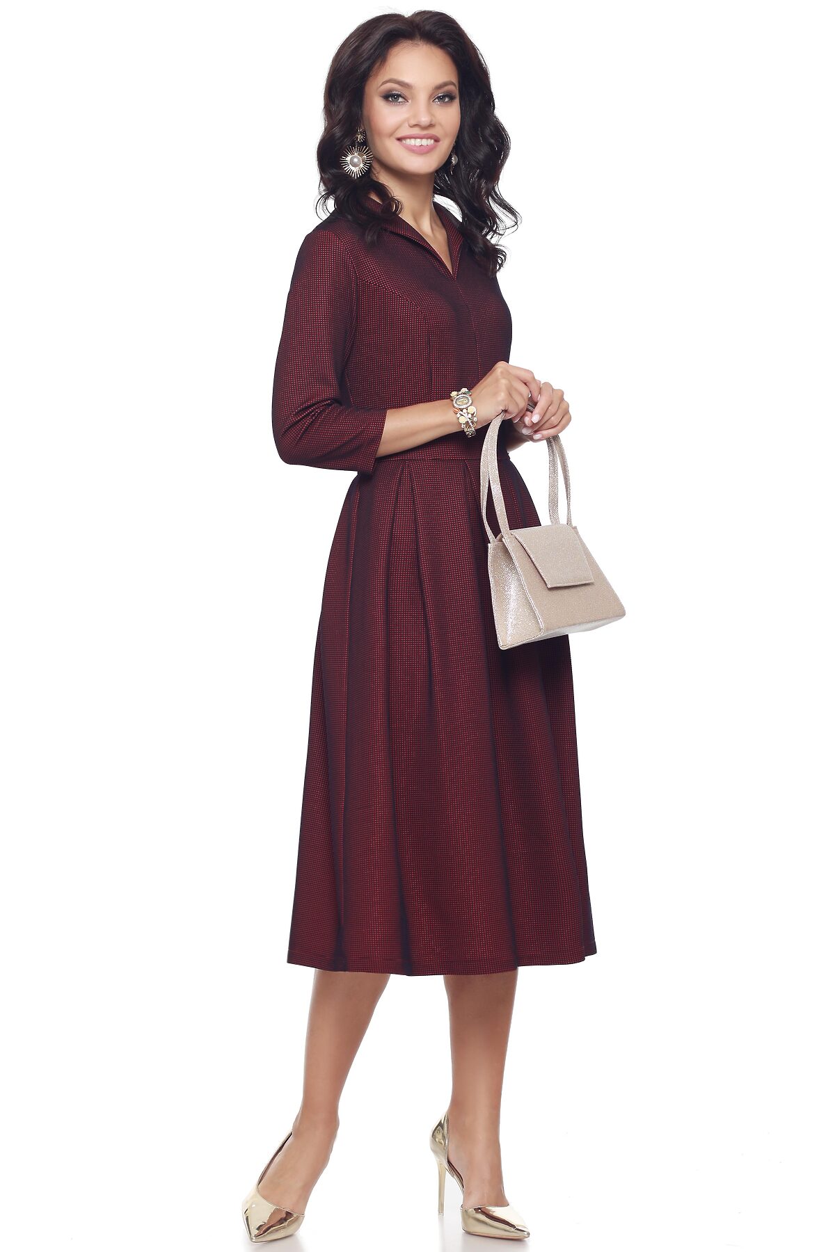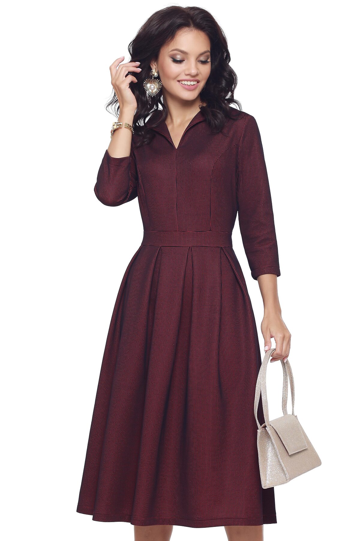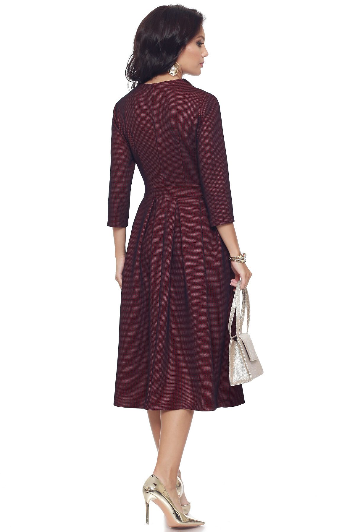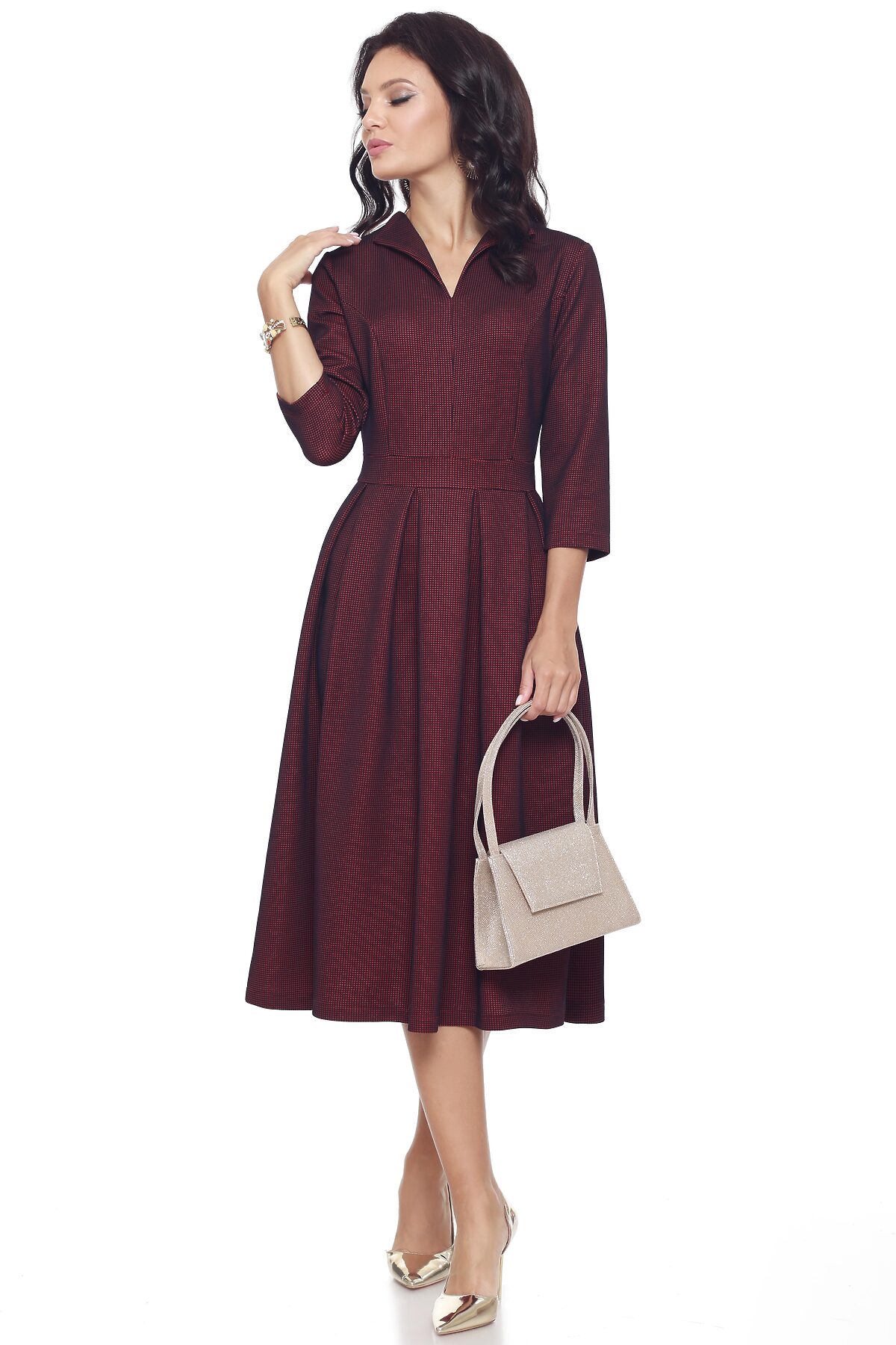 Элегантное платье длины миди с отрезной талией и вшитым поясом. Верх оформлен имитацией воротничка, в боку — потайная молния. Расклешенная юбка длиной ниже колена выложена аккуратными складками. Универсальная модель и для повседневности, и для торжества. Длина: 44 размер - 112 см 46 размер - 113 см 48 размер - 114 см 50 размер - 115 см 52 размер - 116 см 54 размер - 117 см Рост модели на фотографии 170 см. Параметры модели: 88 х 63 х 96 см.