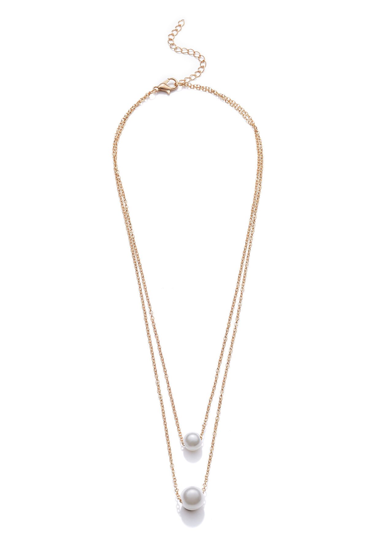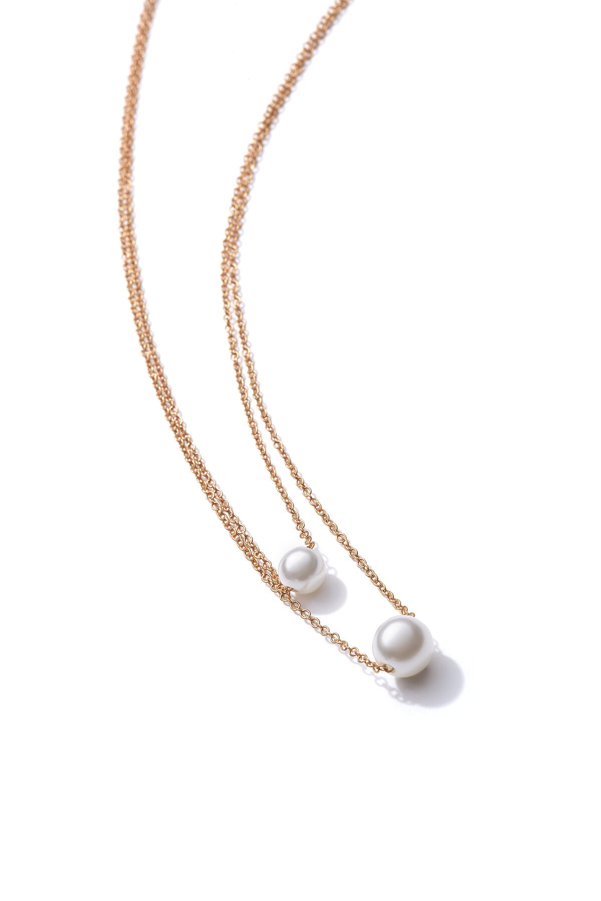 Колье представляет собой двойную цепочку с подвижным декором из жемчужных бусин. Длина колье регулируется от 42 до 47 см с помощью удлинителя и застежки-карабина. Гипоаллергенный бижутерный сплав, из которого выполнено украшение, не оставляет следов на коже.