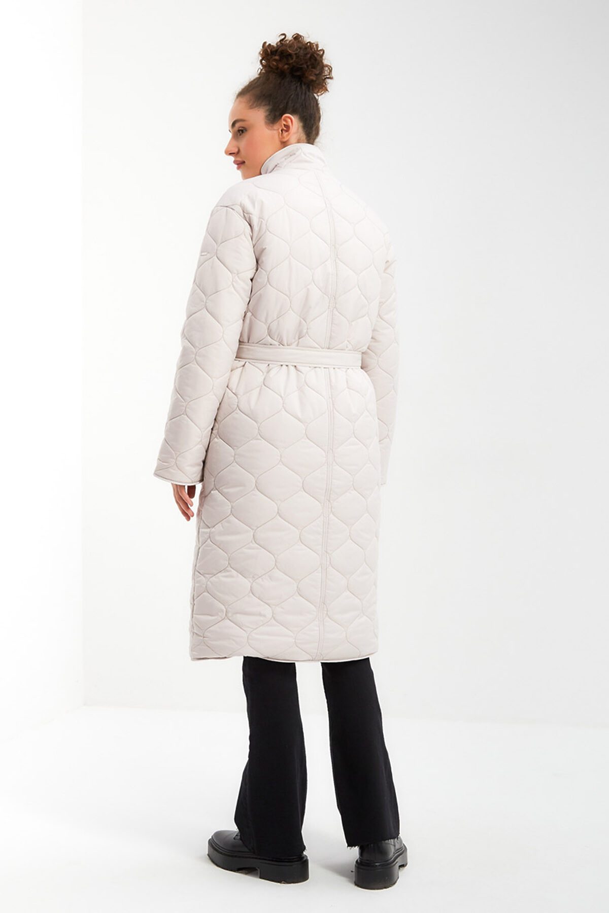 Удлиненный пуховик со стеганой отделкой без капюшона. Силуэт – прямой. Есть два функциональных кармана на листочке. Низ, борт и карманы изделия окантованы. В комплект входит пояс из основной ткани. Внутренний карман на молнии. Ткань верха Js-30. Температурный режим (от -10°C до -25°C). Утеплитель - биопух. Длина рукавов 64 см. Длина изделия 108 см. Выполнена в цветах: светло-бежевый, терракот, темно-синий, черный. Размеры: 42-56. Рост модели 173-178 см.