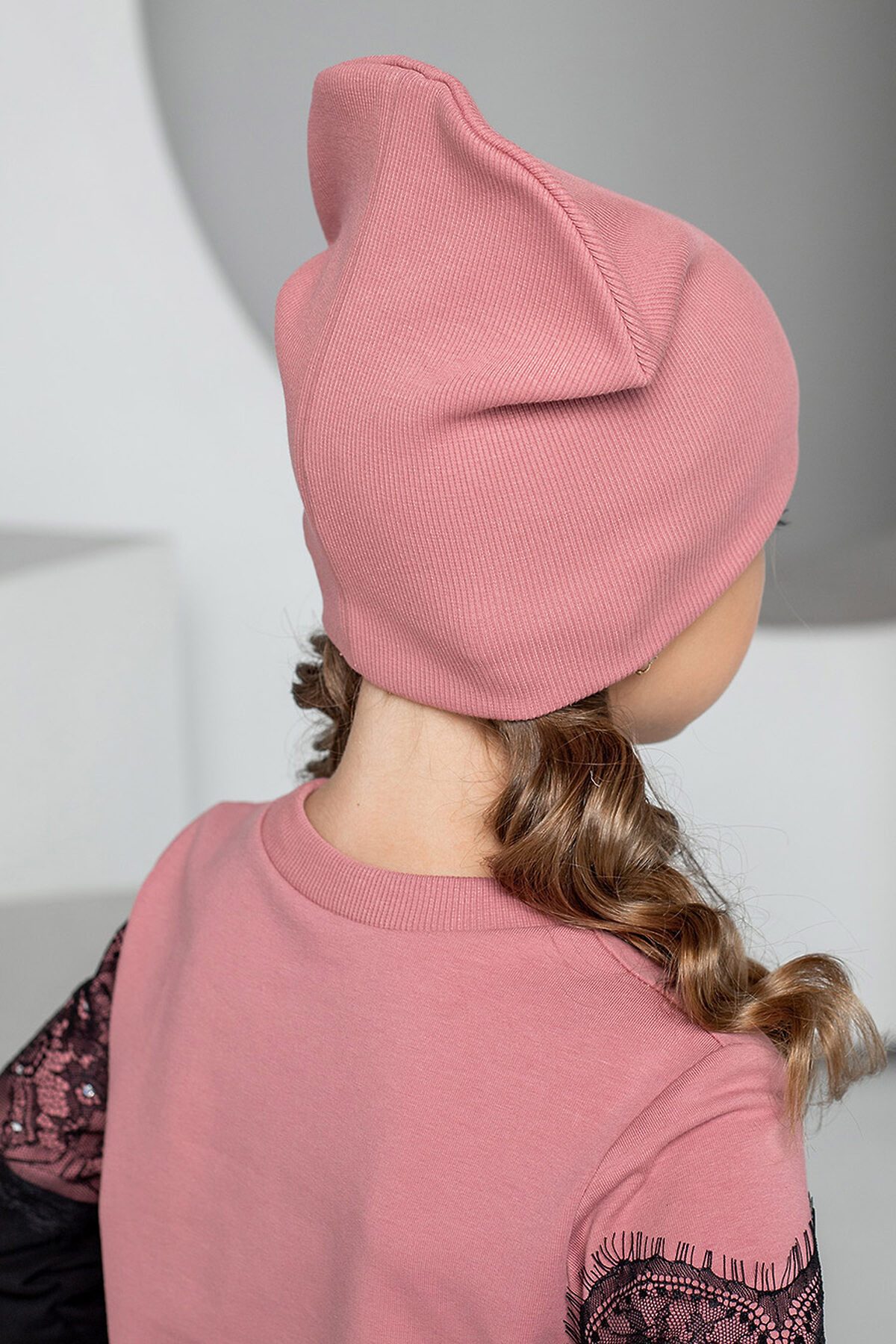 Шапочка для девочки, выполнена из трикотажного полотна «рибана». Шапочка состоит из двух слоёв, с одним задним средним швом.