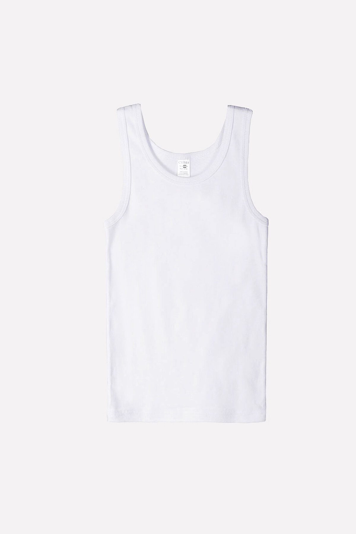 Майка для мальчика бесшовная из однотонной рибаны, проймы и горловина обработаны бейкой.