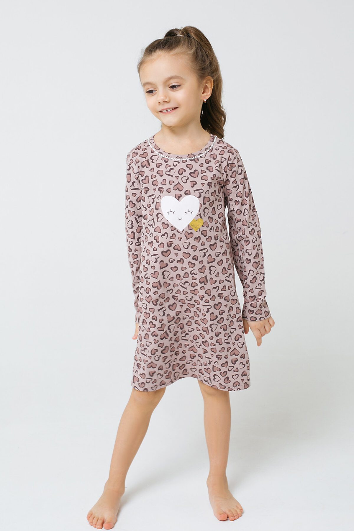 Сорочка CROCKID SALE, сердечки леопард на бежево-сером