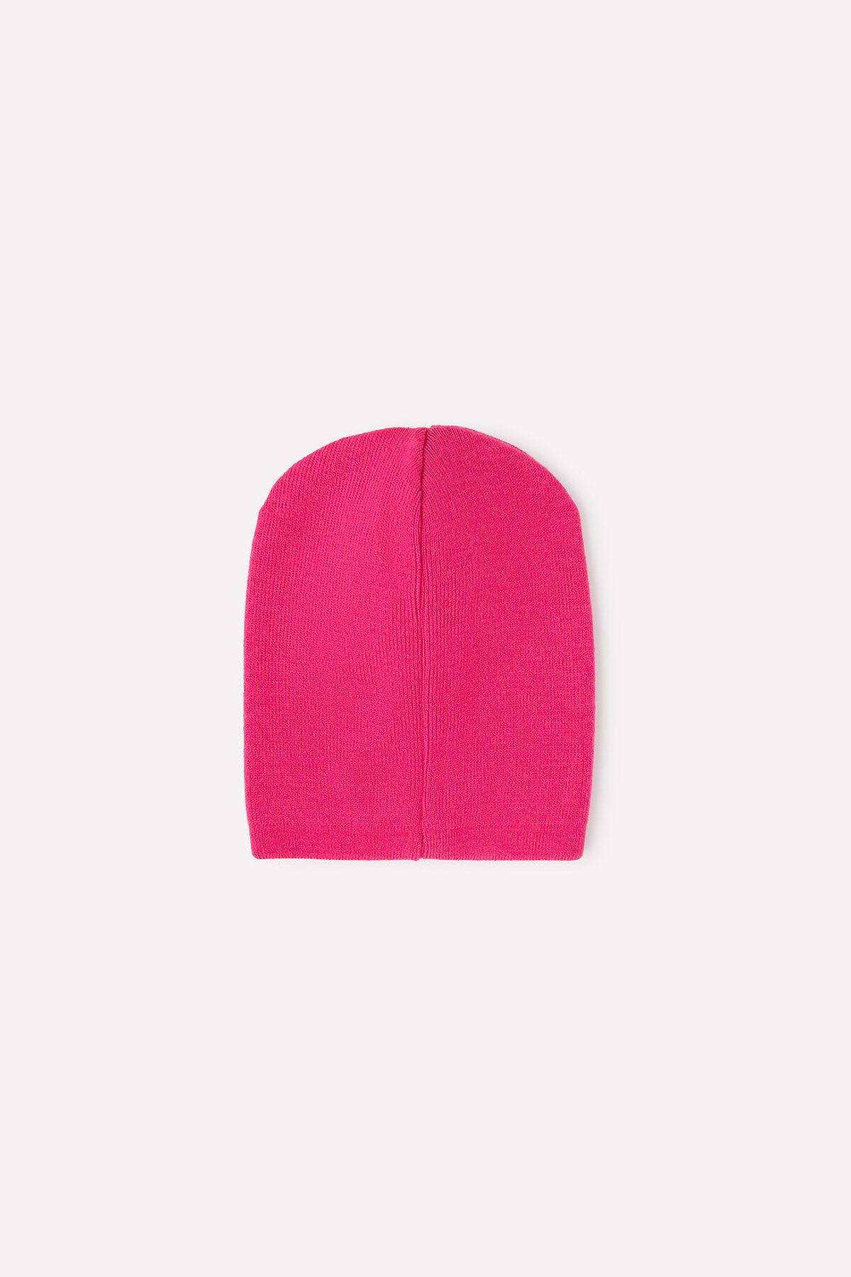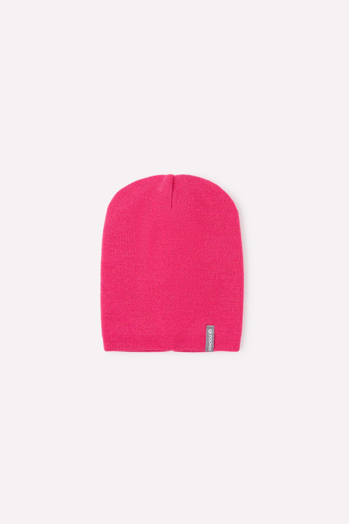Однотонная розовая шапка из полушерсти. Украшена фирменной жаккардовой нашивкой.