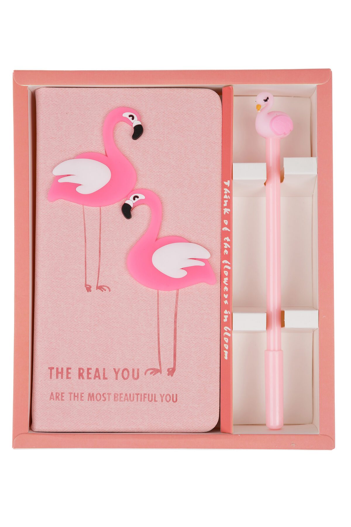 Розовый комплект, состоящий из блокнота и ручки с декором "Фламинго".