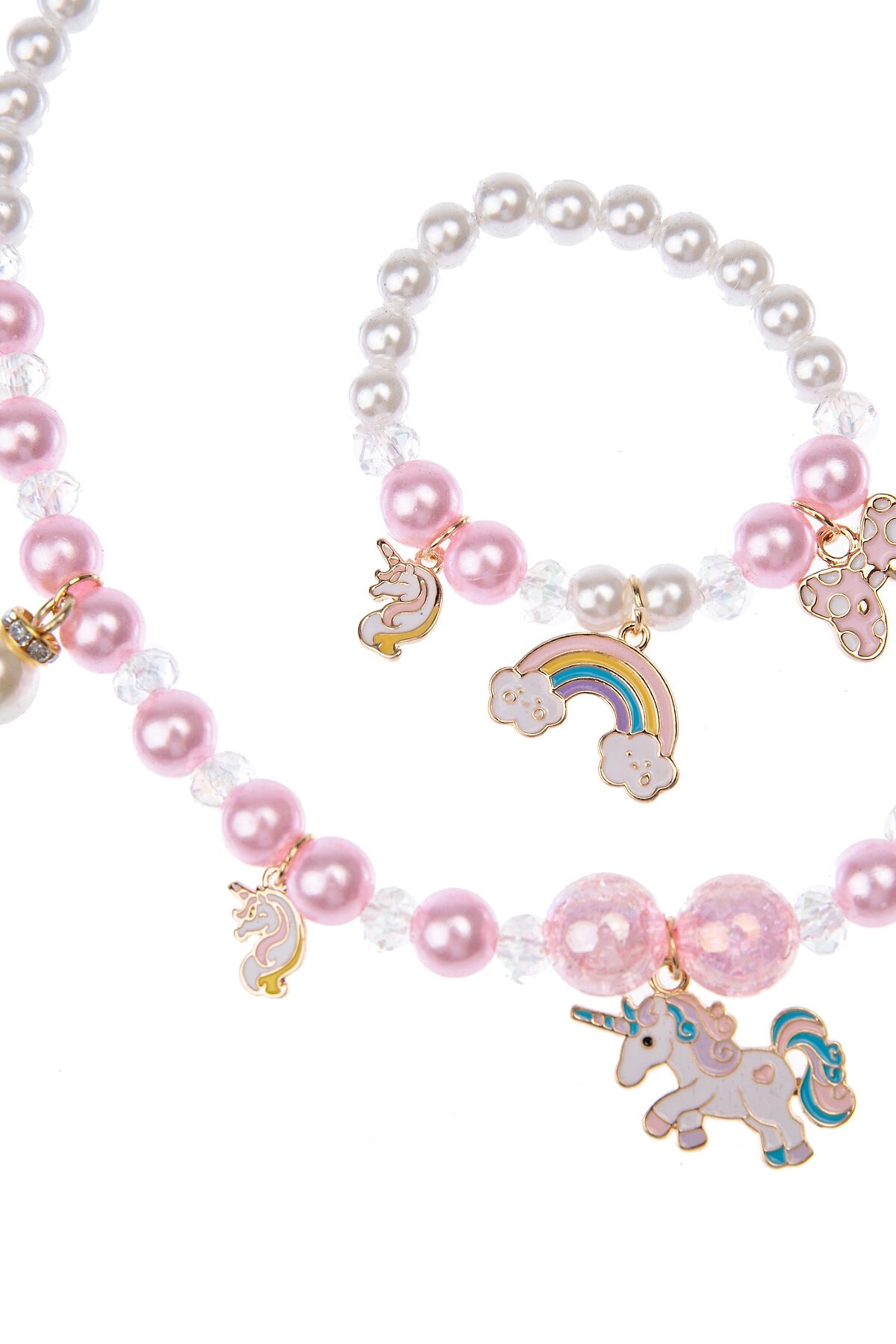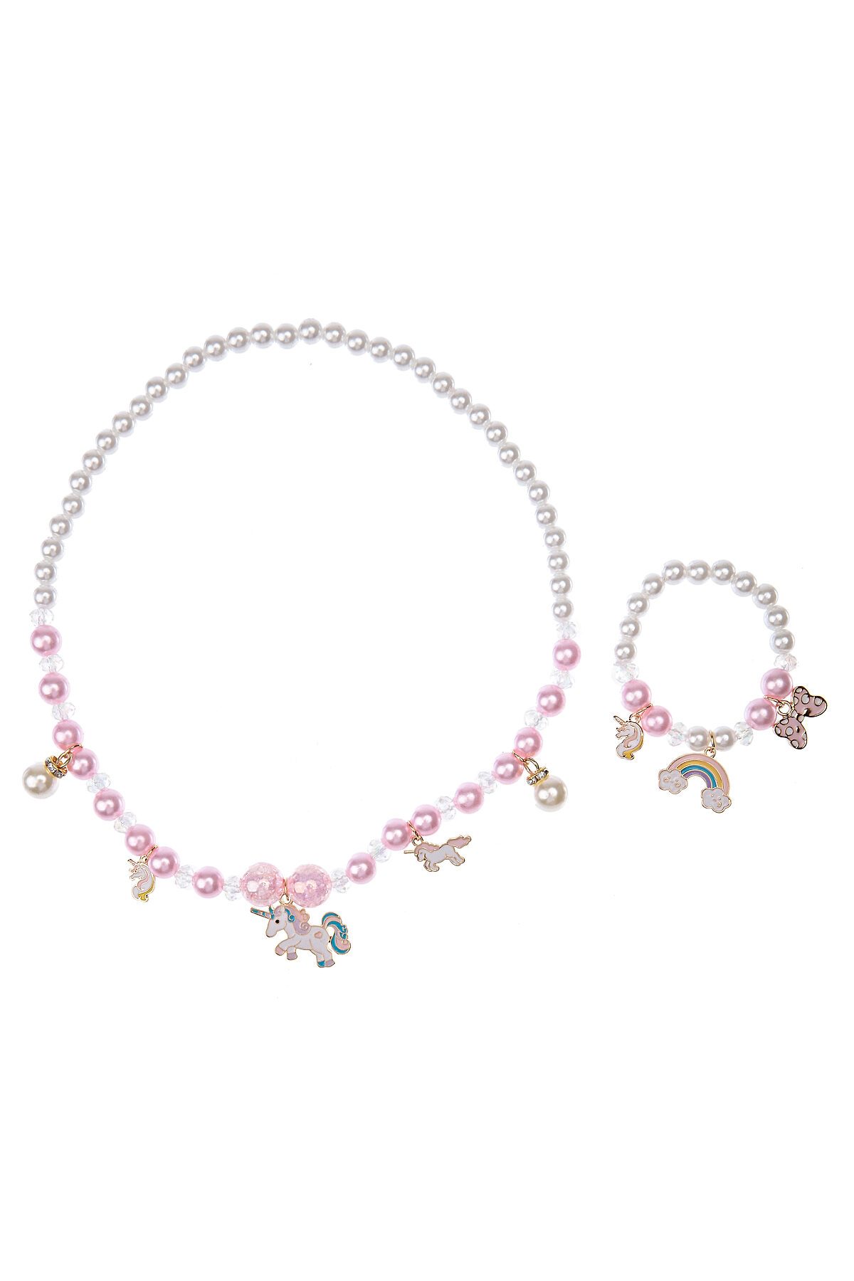 Комплект (Бусы+Браслет) PLAYTODAY, светло-розовый,белый
