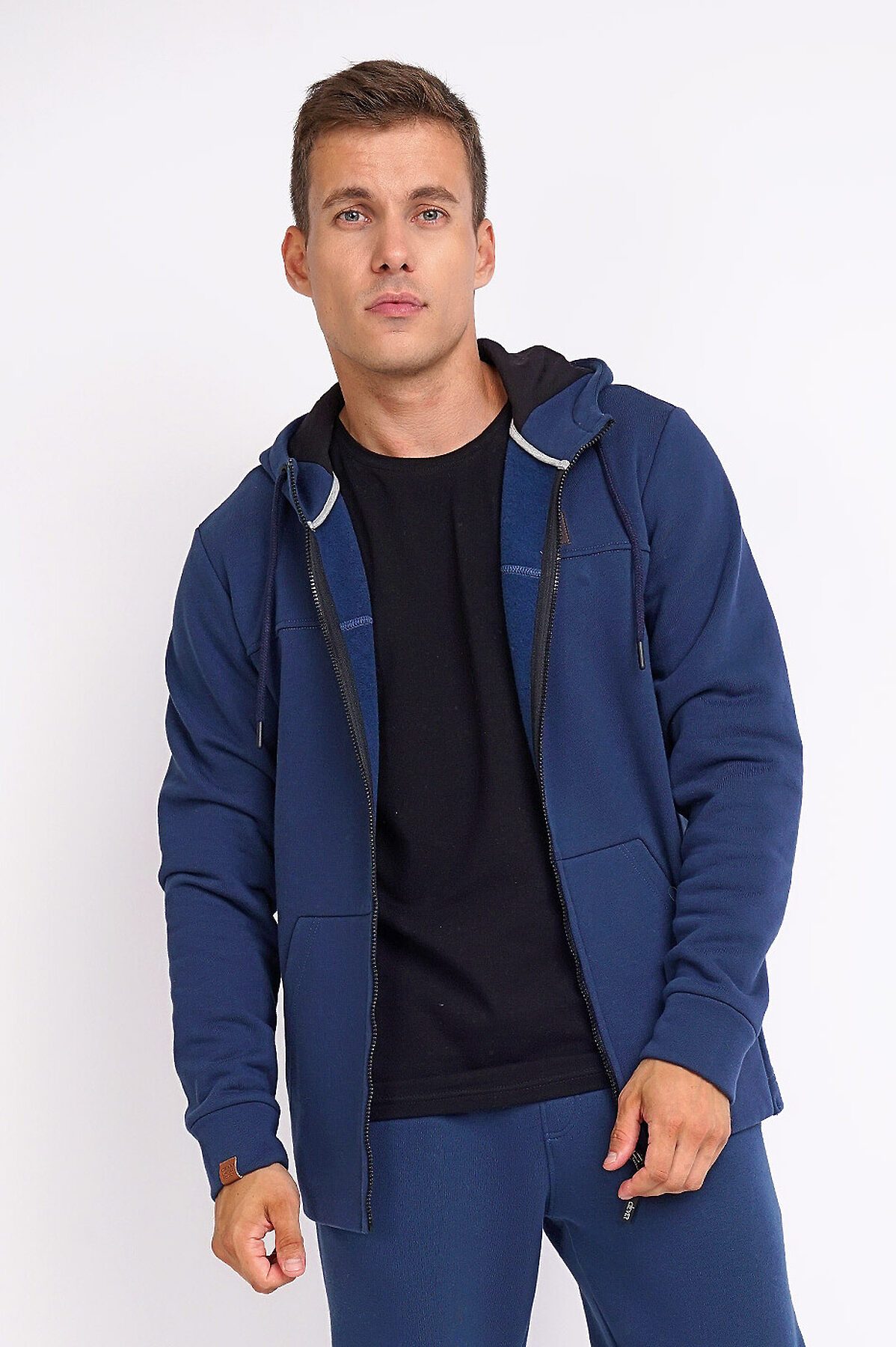Толстовка на капюшоне с молнией из утепленного футера со шнуром и наконечниками. Благодаря карману-кенгуру спереди и рукаву с втачным рукавом с манжетами модель комфортна в носке в течении дня. Изделие привлекает внимание за счет фирменной фурнитуры.