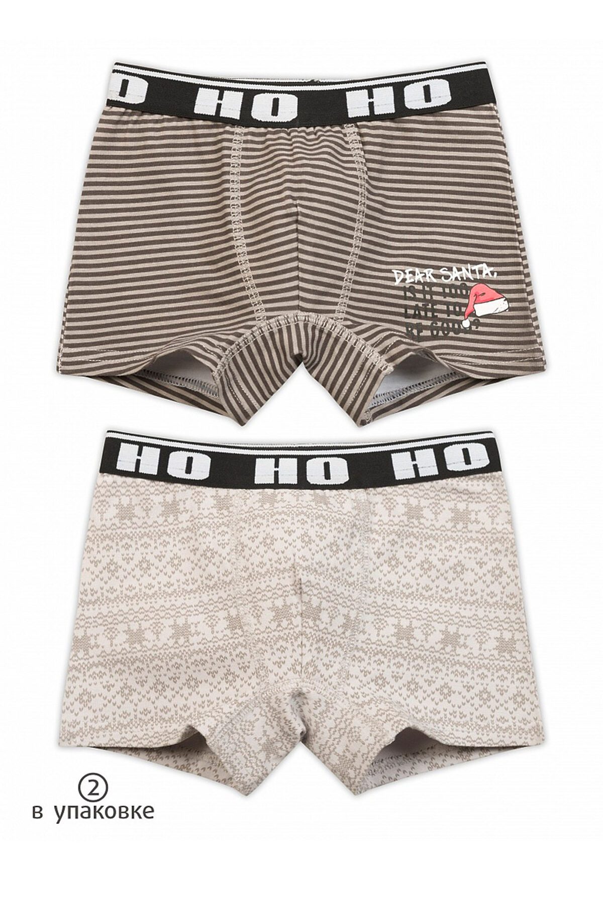Трусы шорты для мальчиков. В комплекте 2 изделия. По талии широкий тканый эластик с вытканным вкруг текстом. Декоративная обработка в области гульфика. Прочный эластичный принт.