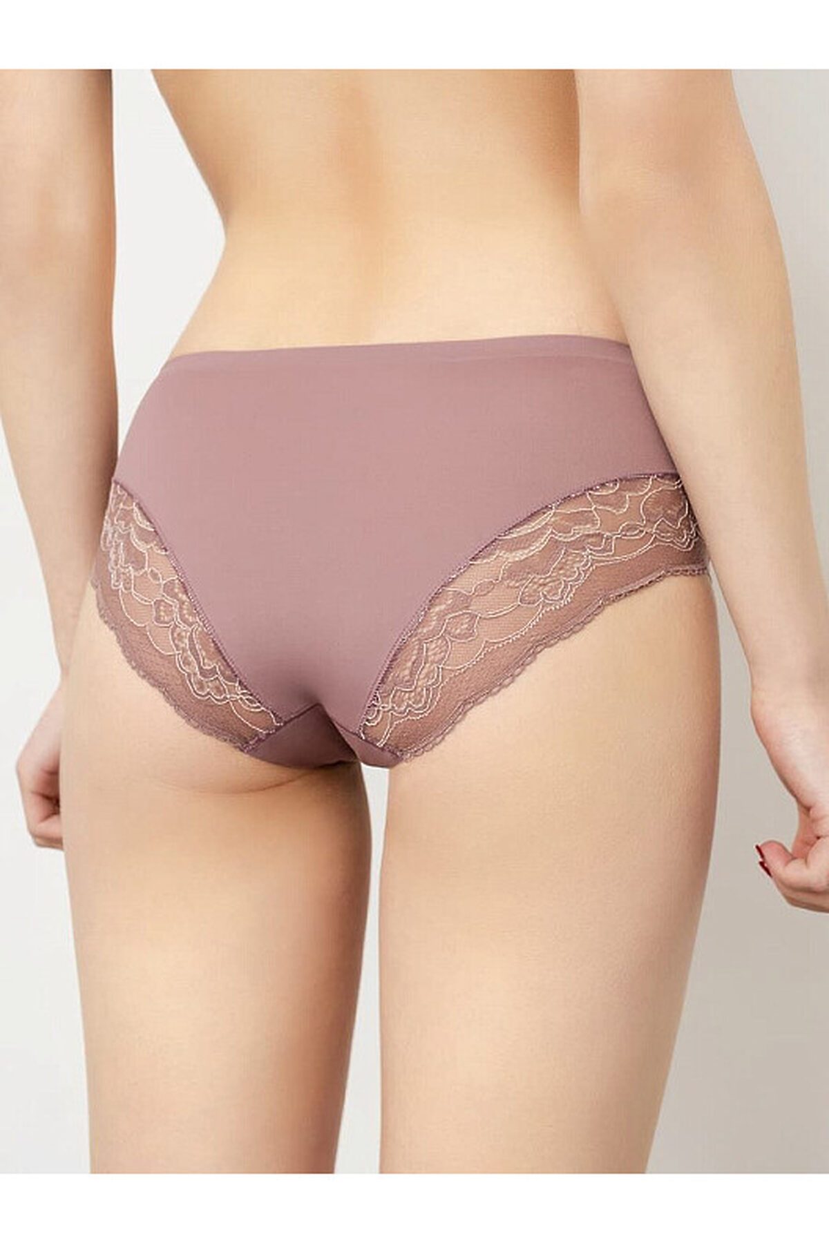 Трусы-шортики из невесомой микрофибры. Линия талии классическая. Края трусиков обработаны на специальном клеевом оборудовании. Детали из нежного кружева добавляют модели элегантности.