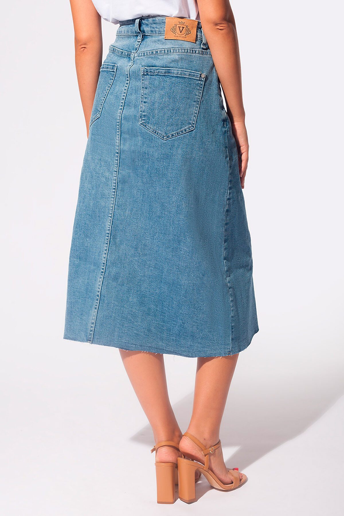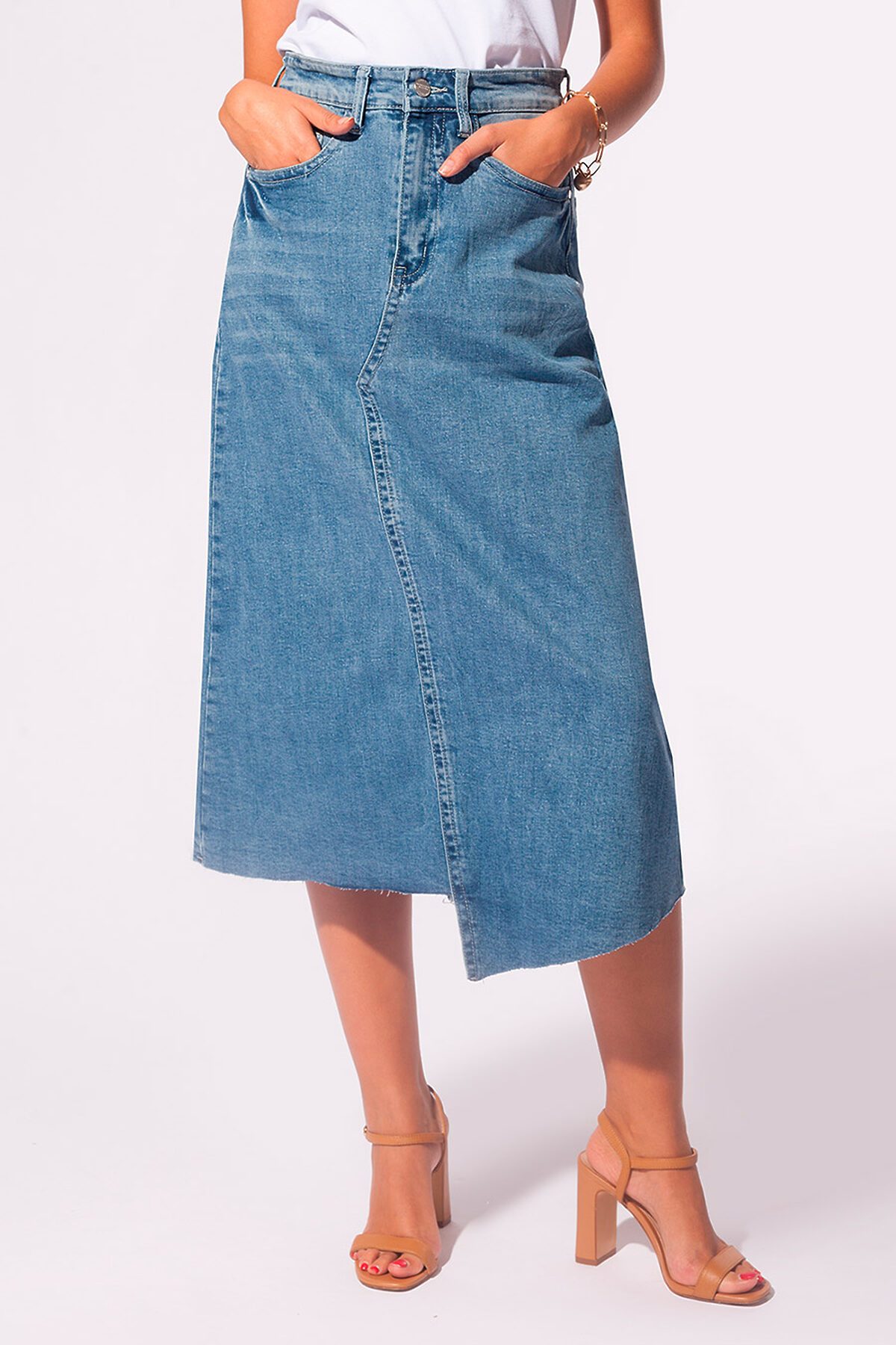 Юбка деним - удобный элемент любого гардероба. Посадка на талии. Ассиметричная с не обработанным низом.Такой силуэт удобен в любом размере и украшает фигуру. В заправку акцентрирует талию, в любых луках скрывает недостатки. Ткань со стиркой выглдяит дорого и роскошно. Юбка украшена фирменной фурнитурой VILATTE.