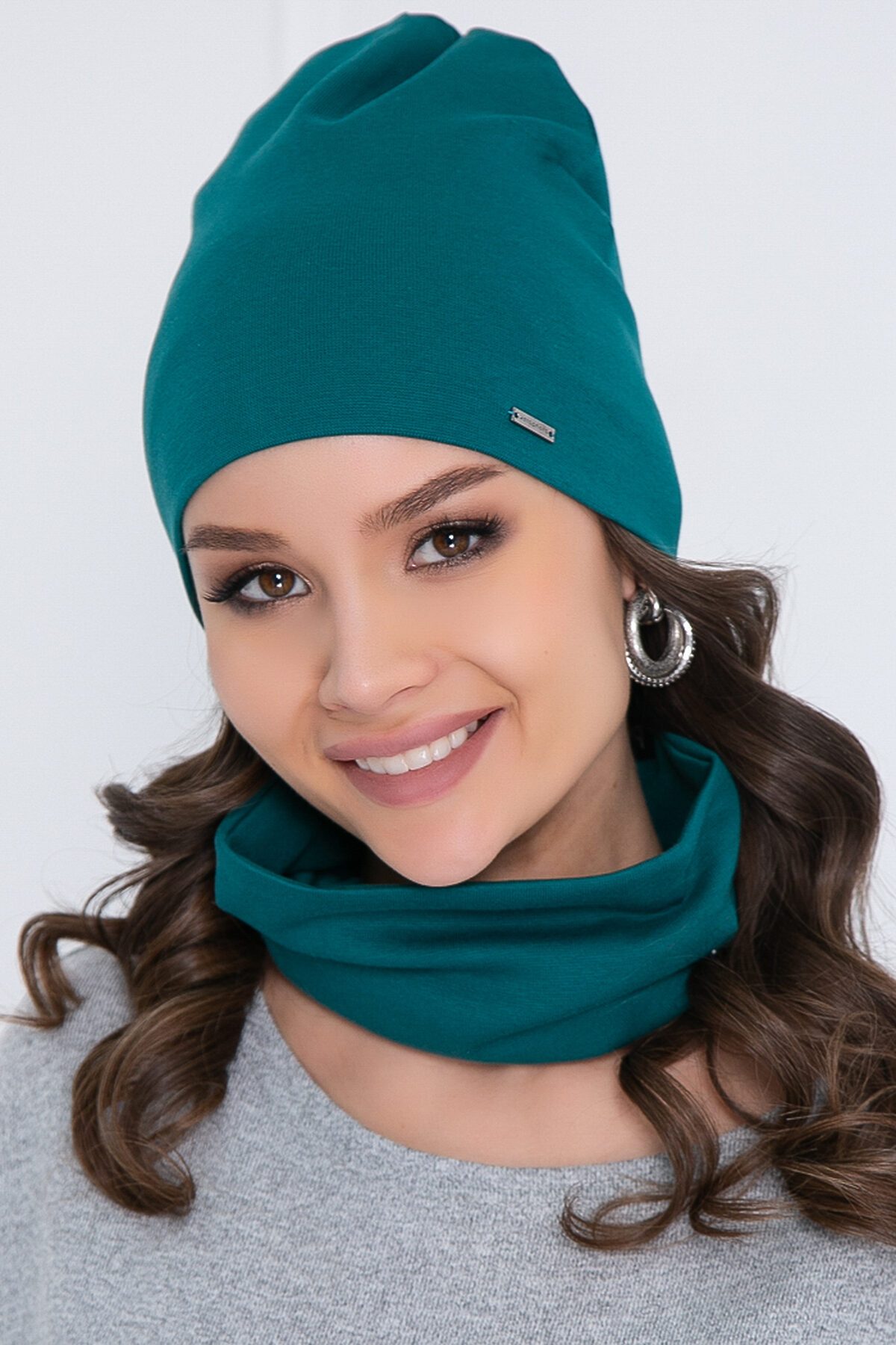 Комплект Марана! Классический набор из трикотажа, состоящий из шапки с декоративным металлическим элементом и шарфа-хомута. Такой комплект спасет вас от ветра и подарит тепло в холодный сезон.