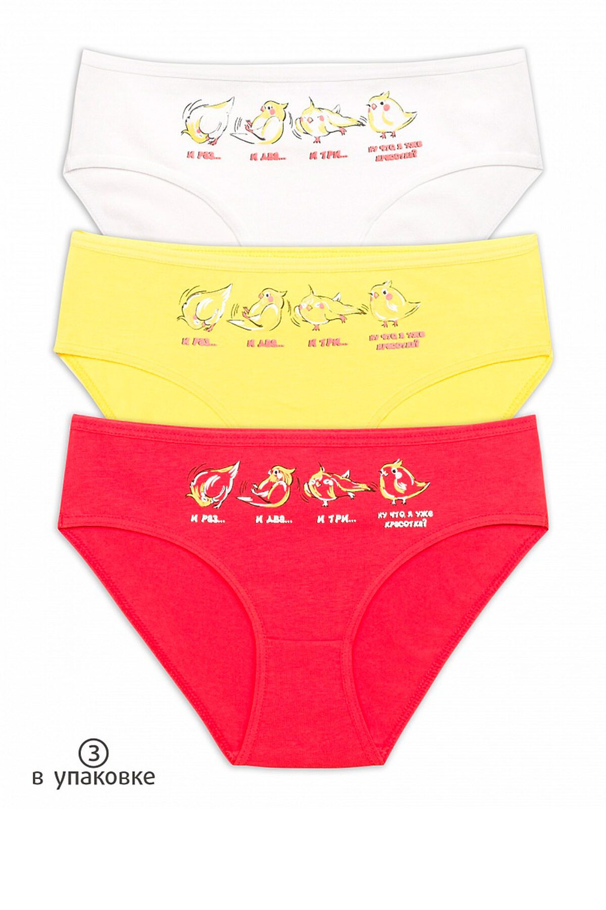 Трусики слипы со средней посадкой для девочек. В комплекте 3 изделия. Обработка эластиком по талии и по ноге. Прочный принт.