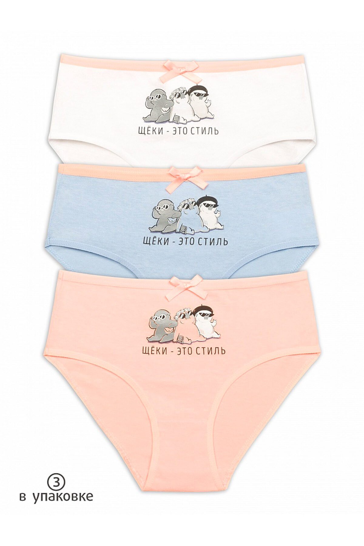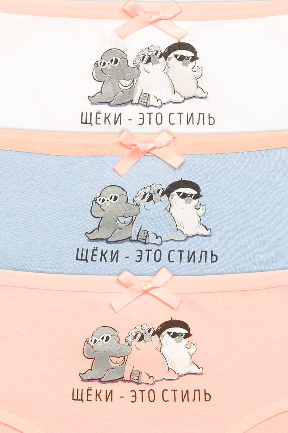 Трусики слипы с высокой посадкой для девочек. В комплекте 3 изделия. По талии эластик декорирован атласным бантиком. Обработка эластиком по ноге. Прочный принт.