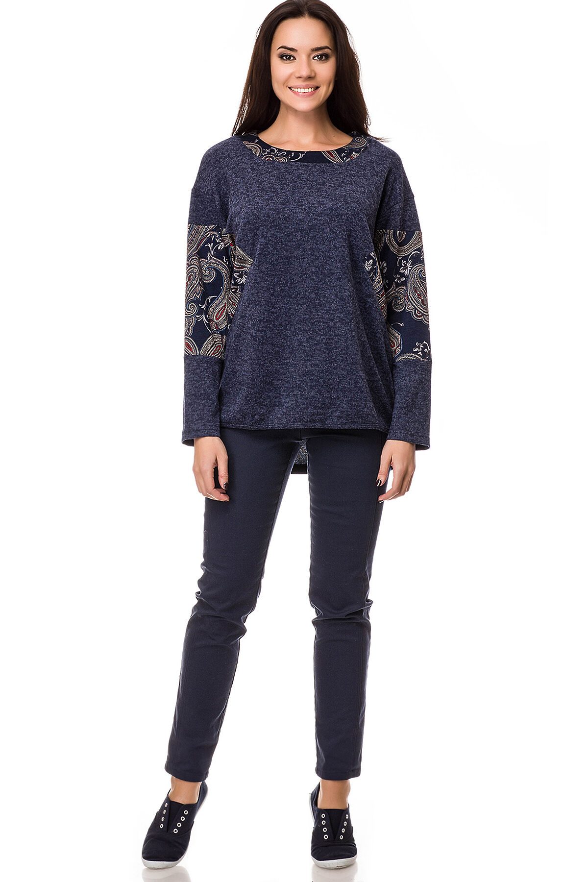 Оригинальная блуза с вставками из блестящей ткани, выполненная из приятного к телу поливискозного материала. Модель с круглым вырезом горловины, длинным рукавом с опущенной линией плеча и с удлиненной спинкой. Прекрасная модель для повседневного гардероба.
