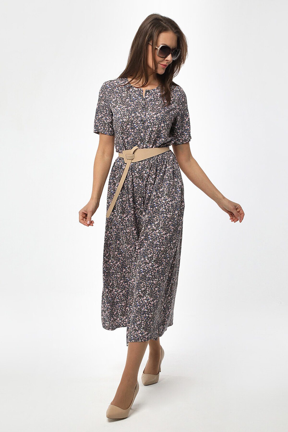 Платье-миди с застёжкой на пуговицы и карманами в боковых швах.