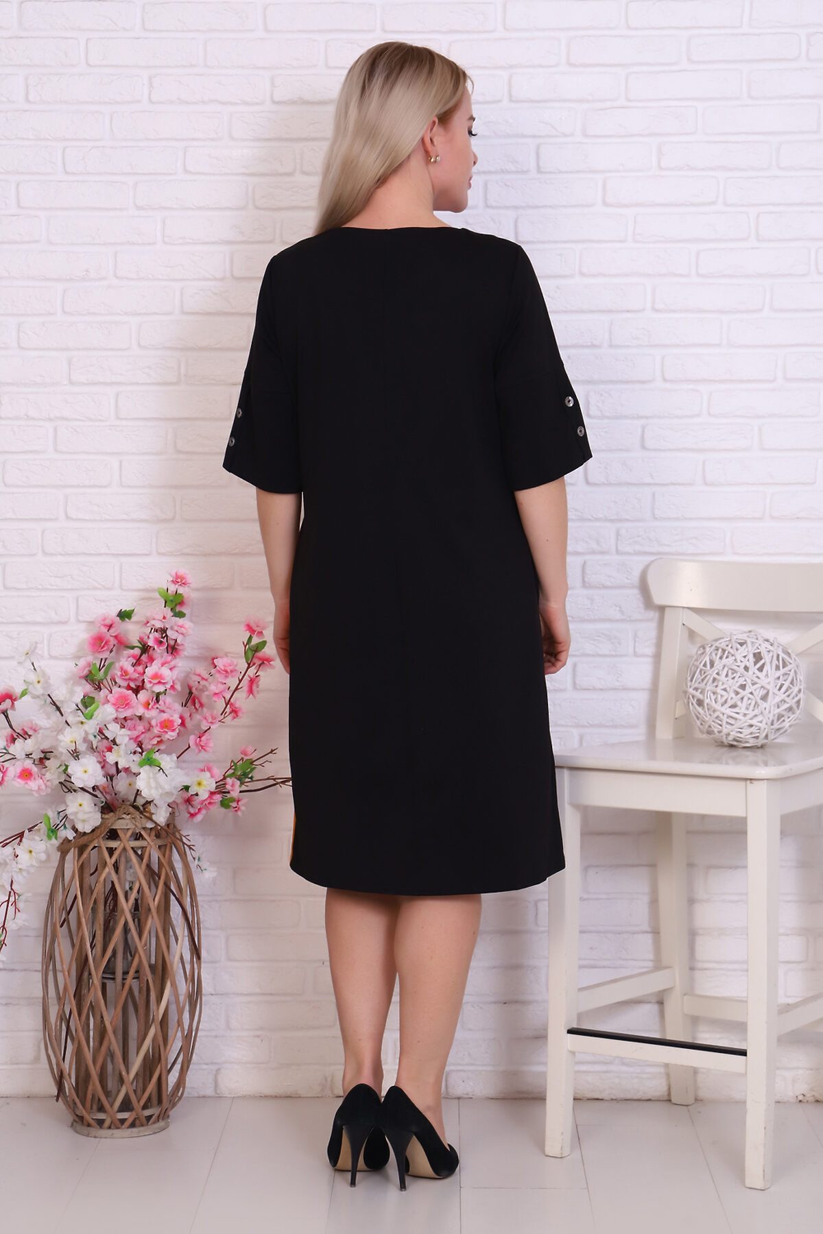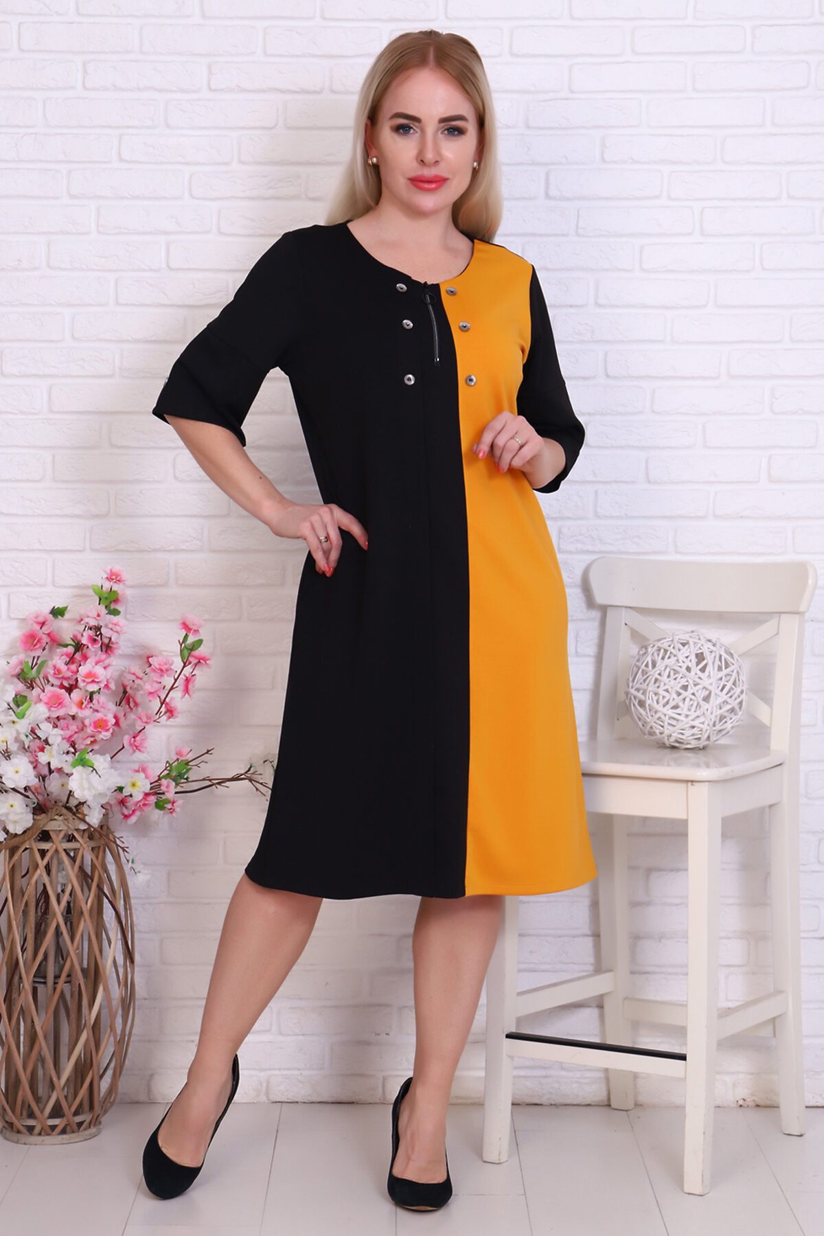 Платье идеально подходит как для выхода в кафе, так и для повседневной носки. Оригинальное сочетание двух цветов придают платью загадочность и шарм. Полочка украшена декоративными пуговицами молнией. Рукав 3/4 так же украшен пуговицами.