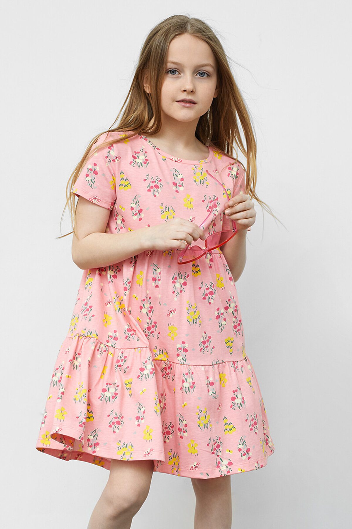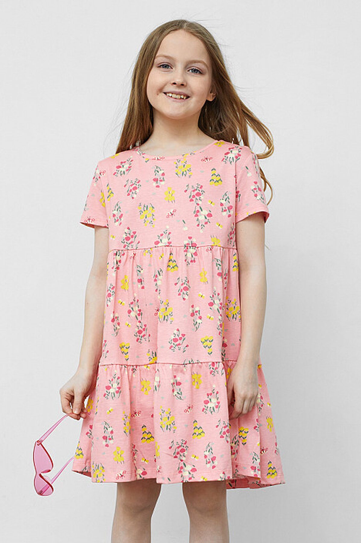 Платье из трикотажного полотна кулирного переплетения. Силуэт А-образный, с короткими рукавами-фонариками на подкладке. Платье с отрезной верхней деталью. Юбка со сборкой. Мило и комфортно!