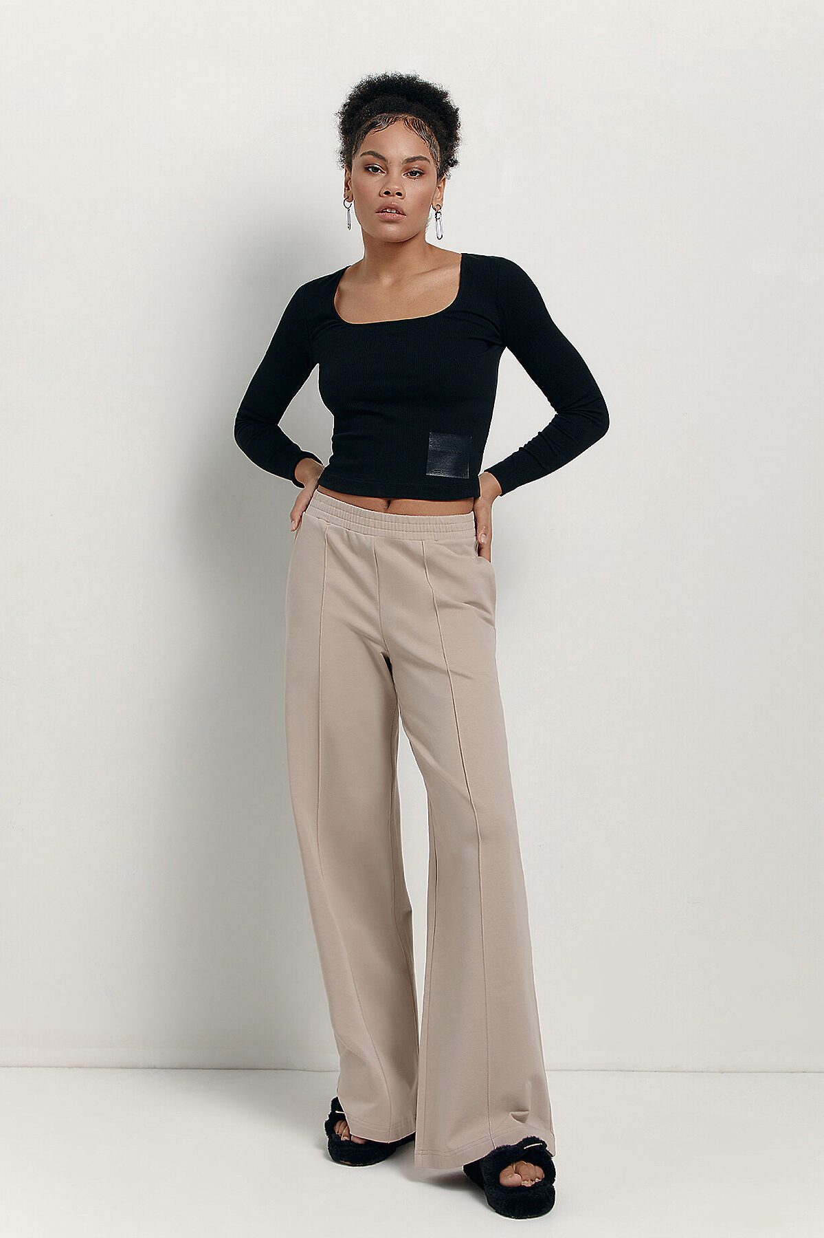 Широкие брюки c боковыми карманами LBK 1794 из плотного, приятного к телу футера станут основой для множества расслабленных повседневных образов. · высокая посадка · клёш от бедра · притачной пояс с эластичной тесьмой внутри · рельефные швы с проложенными по ним отделочными строчками спереди · функциональные боковые карманы · плотный, приятный к телу футер без флиса · устойчивый цвет и сохранение формы при соблюдении рекомендаций по уходу · стильная основа для расслабленных повседневных образов. Для создания комплекта дополните брюки фактурным укороченным джемпером из футера с широкими рукавами LD 1631.