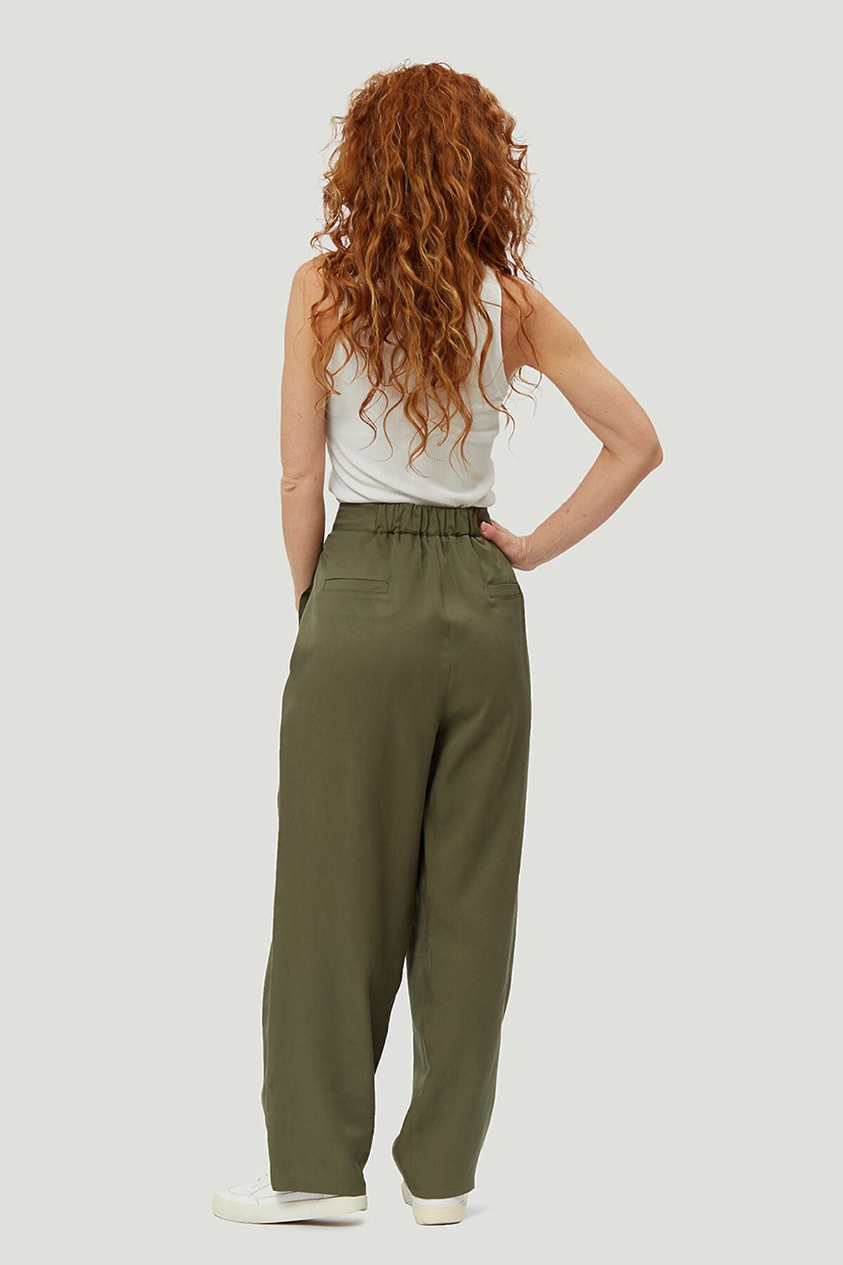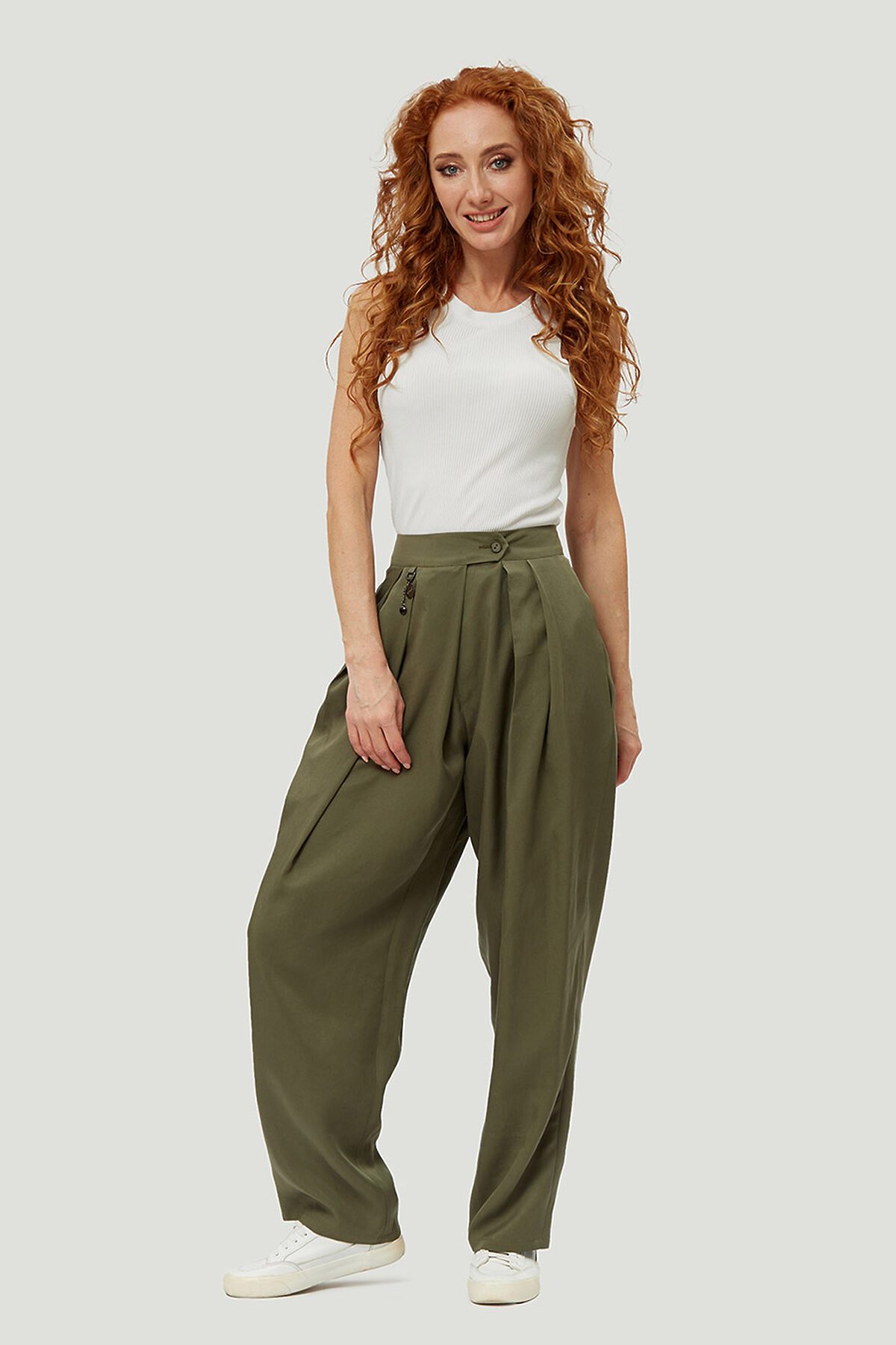 Стильные, модные брюки свободного кроя комфортной длины от российского производителя D’imma Fashion Studio из натуральной ткани - олицетворение женственности, привлекательности и уверенности. Карманы в боковых швах, складки посередине передних половинок брюк и глубокая центральная складка с внутренней потайной молнией дополняют образ и создают комфорт. Спереди на поясе прорезная петля и две функциональные пуговицы, позволяющие регулировать ширину пояса. Сзади имитация карманов с врезными листочками и, для комфорта и удобства, пояс на резинке. Модель создана для тех, кто любит быть индивидуальным и неповторимым. Брюки для женщины – палочка-выручалочка и универсальный предмет гардероба, который уместен и в будни, и в праздники.