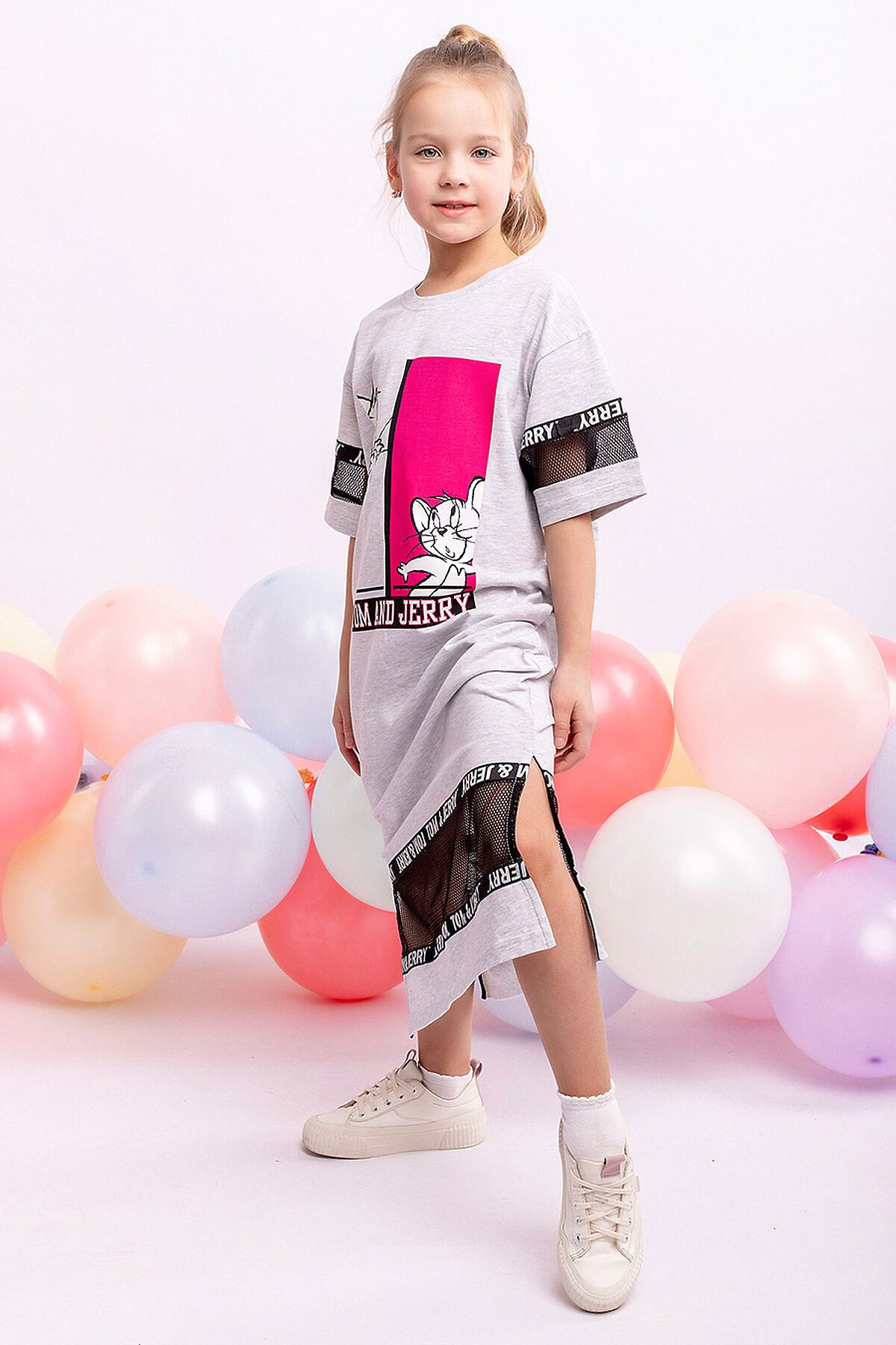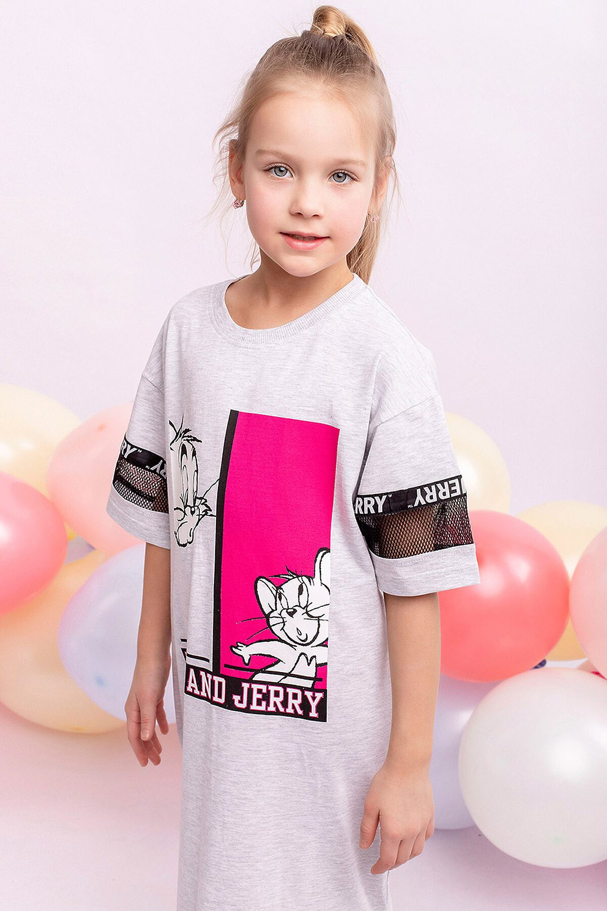 Платье детское длины миди с короткими рукавами и ярким рисунком. Материал: Супрем пенье 92% хлопок 8% эластан.