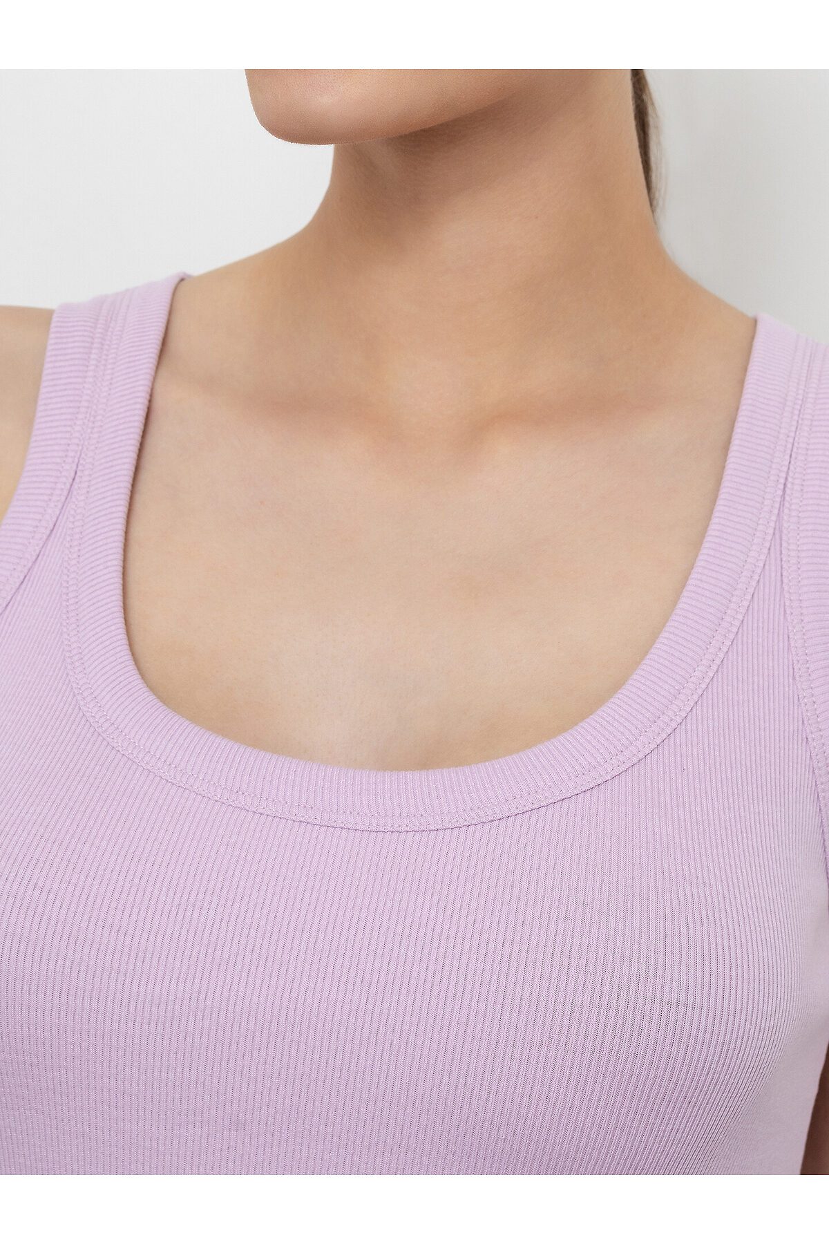 Топ из трикотажной рибаны прилегающего силуэта. Перед и спинка без швов и рельефов. Горловина круглая. Стильный многофункциональный топ, рекомендуем!