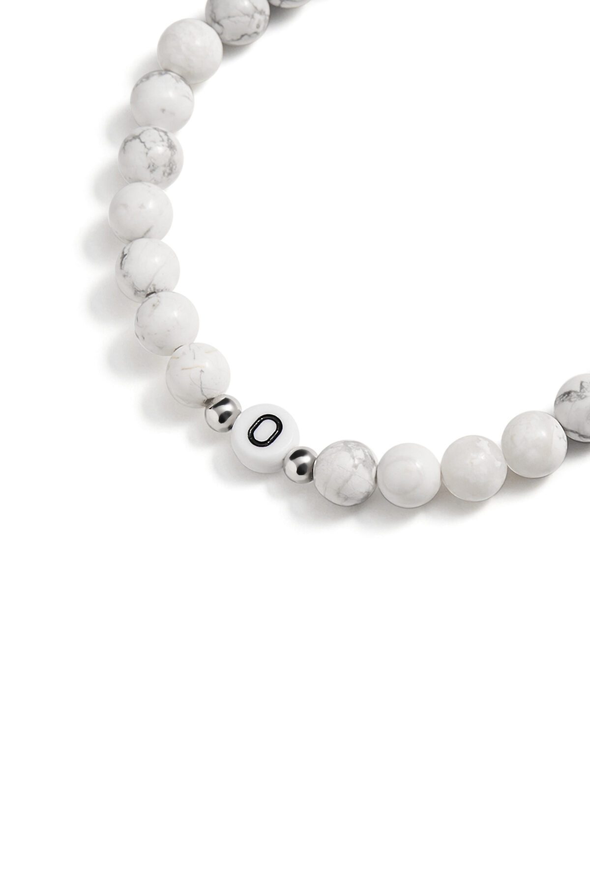 Браслет выполнен из декоративного камня. Центральным элементом украшения является бусина с буквой латинского алфавита. Бусины собраны на прочной прозрачной резинке, благодаря чему браслет подойдет для любого запястья. Длина браслета 21 см.