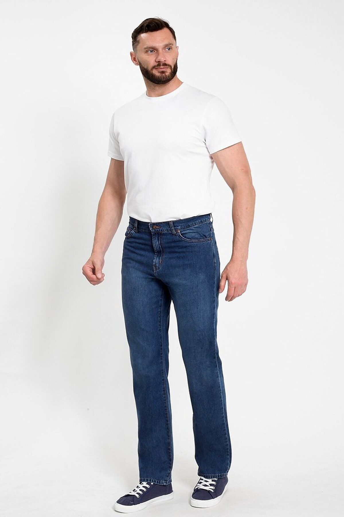 Мужские классические джинсы с пятью карманами. Посадка Regular fit (полуоблегающие по бедру), высокая талия. Застежка на молнии. Немного дополнительно заужены в колене и по низу по сравнению с моделью 0965. Выполнены из ткани denim 100% cotton. Средняя стирка со слабовыраженными потёртостями спереди и сзади. Параметры указаны для размера 32. Длина внутреннего шва 84 см.